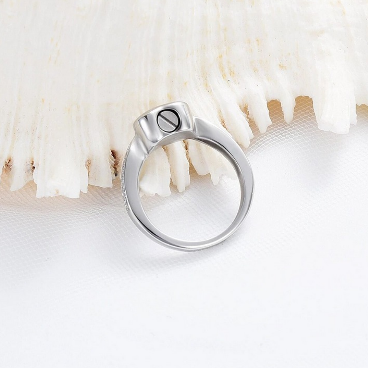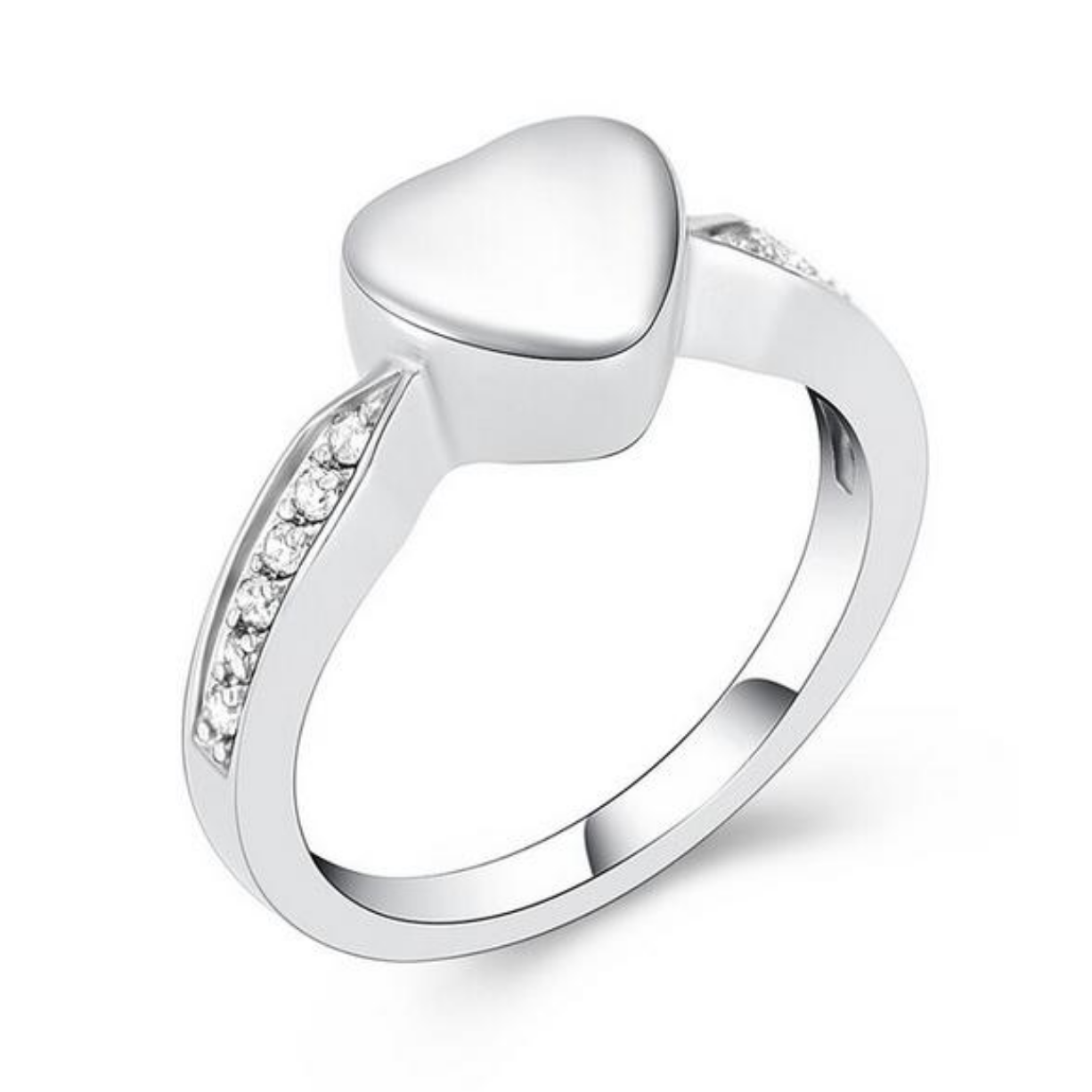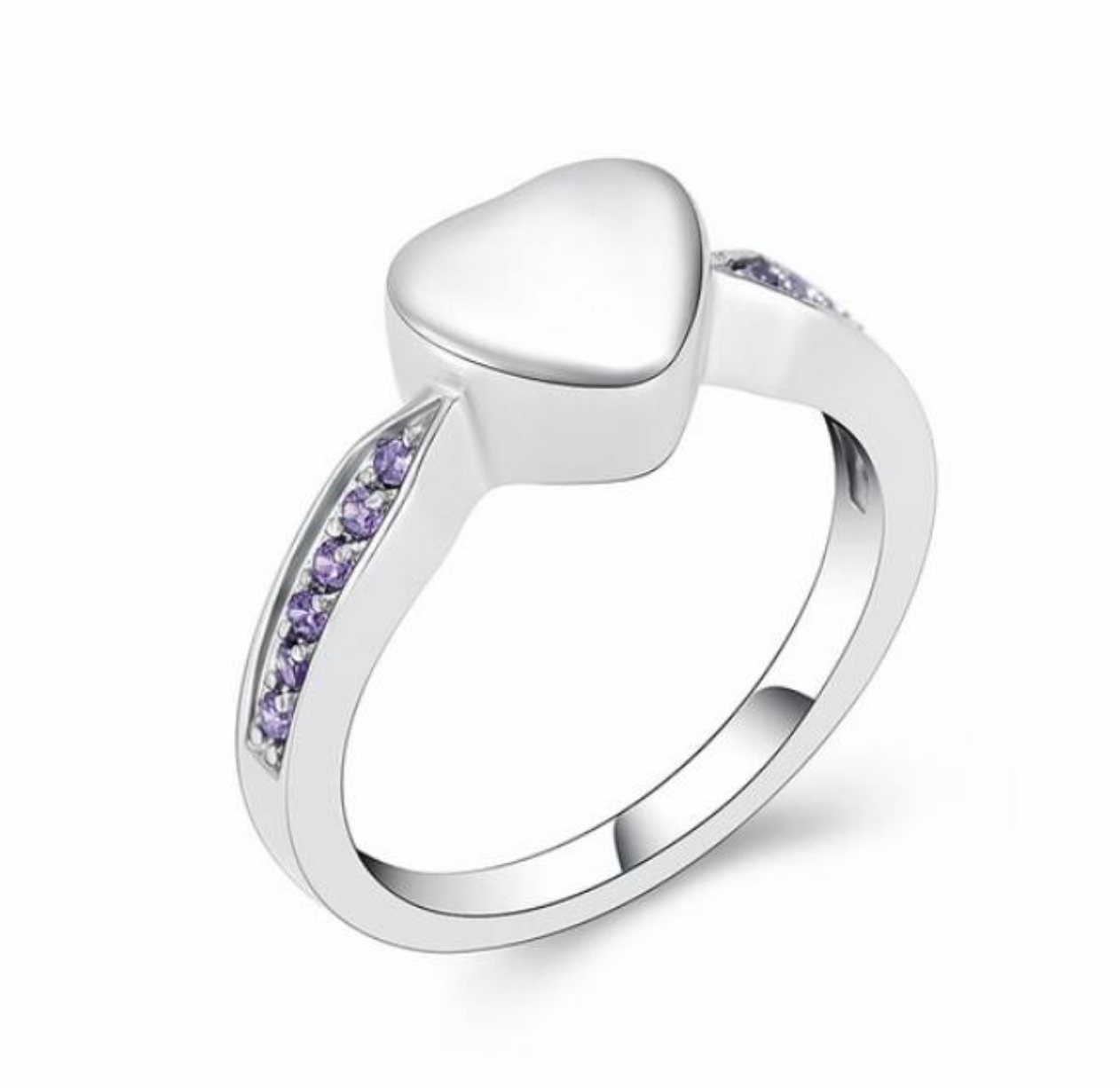 Stainless Steel Cremation Ashes Crystal Heart Ring - Purple, White (6/7/8/9/10)