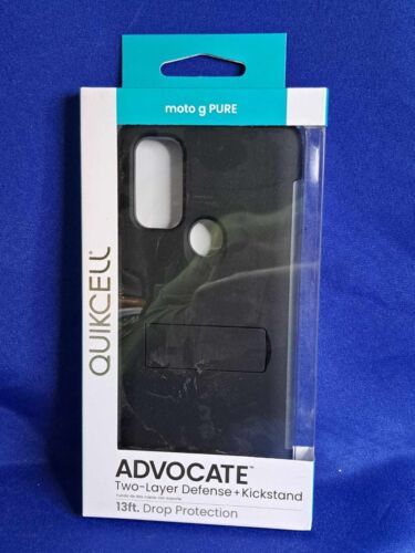 Upgrade your phone's protection with the Quikcell Advocate Steel Black Phone Case. This dual-layer case is designed to keep your Moto G PURE safe from scratches, dents, and other damages. It features a kickstand for hands-free viewing and easy access to all ports and buttons. The black color adds a touch of sleekness to your phone.
