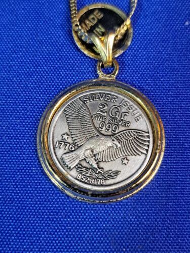 Silver Issue Marked 2 gr. Fine Silver .999 Eagle Coin Pendant w/ Chain Necklace