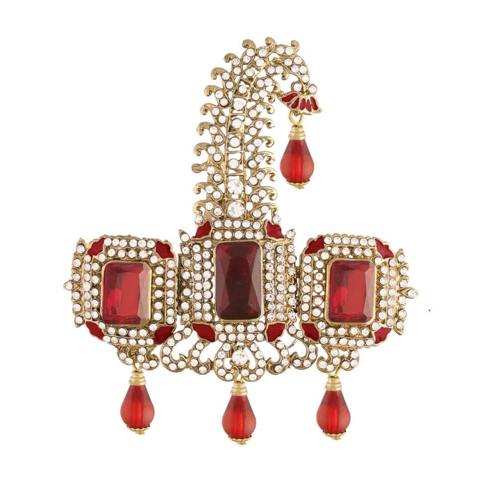 Bead Kundan Jewelry Set Turban Safa Kalangi Brooch Groom Golden Metal Finish