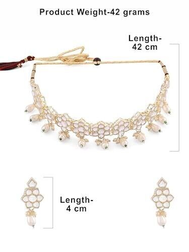 Features :An intriguing jewellery set to enhance your traditional look! Beautiful color and fine detailing, handcrafted just for you! If you really want to look beautiful on all occasions creating a different look every time then you can keep one of this traditional choker set by Zaveri Pearls. Take this chance to decorate yourself with the most beautiful adornment you can ever own.