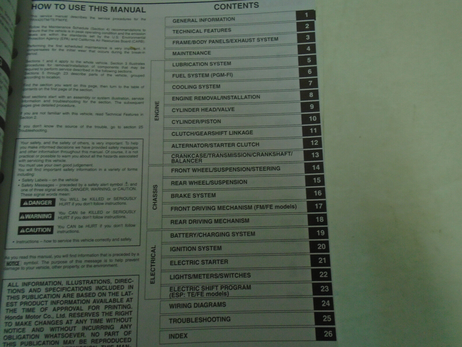 Full of information and illustrations, step by step instructions, assembly/disassembly, exploded illustrations/diagrams, great manual to have when owning/servicing a HONDA and will be a great aid to keep your BIKE on the road. These manuals will save you money in repairs/service. A must have if you own one of these vehicles.