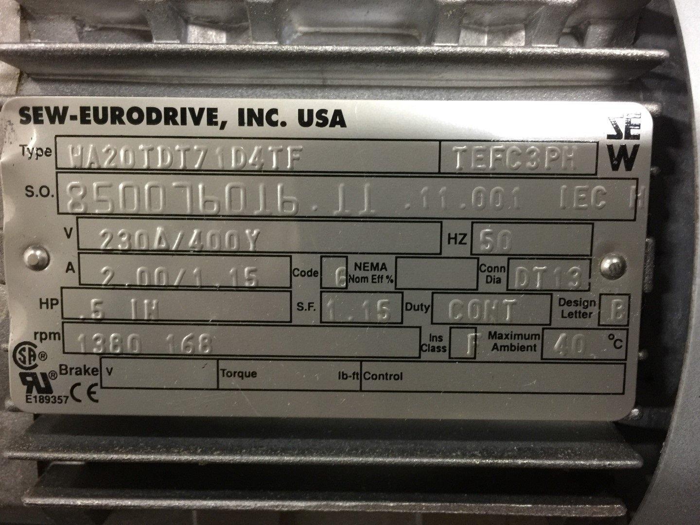 Sew-Eurodrive WA20TDT71D4TF Gearmotor 0.5HP and 50 similar items