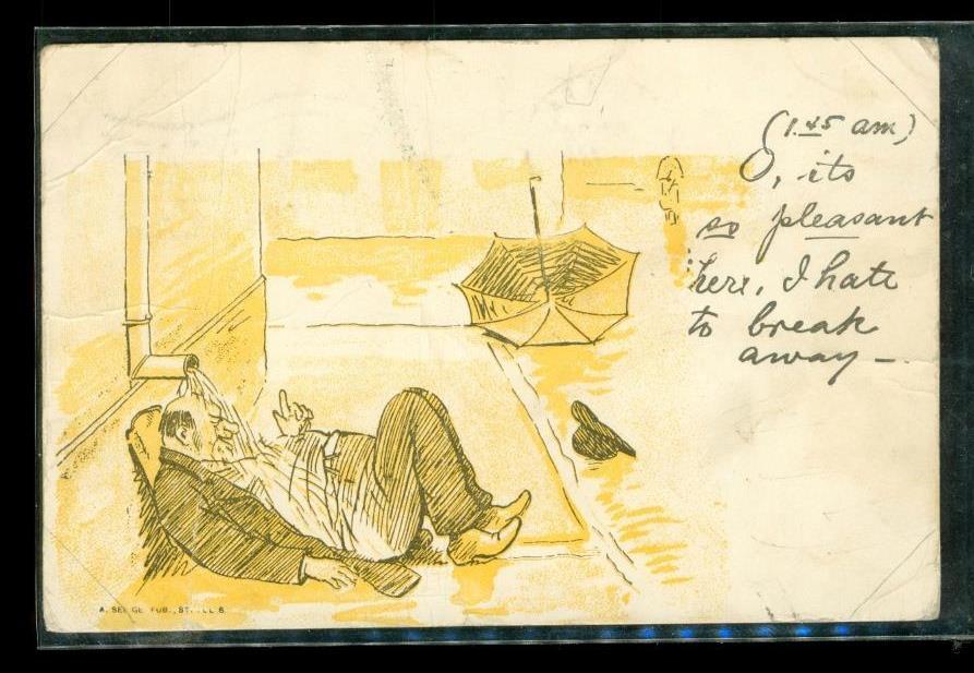Vintage Paper Postcard 1905 Cancel UDB Passed Out Drunk Under Rain Spout Cartoon
