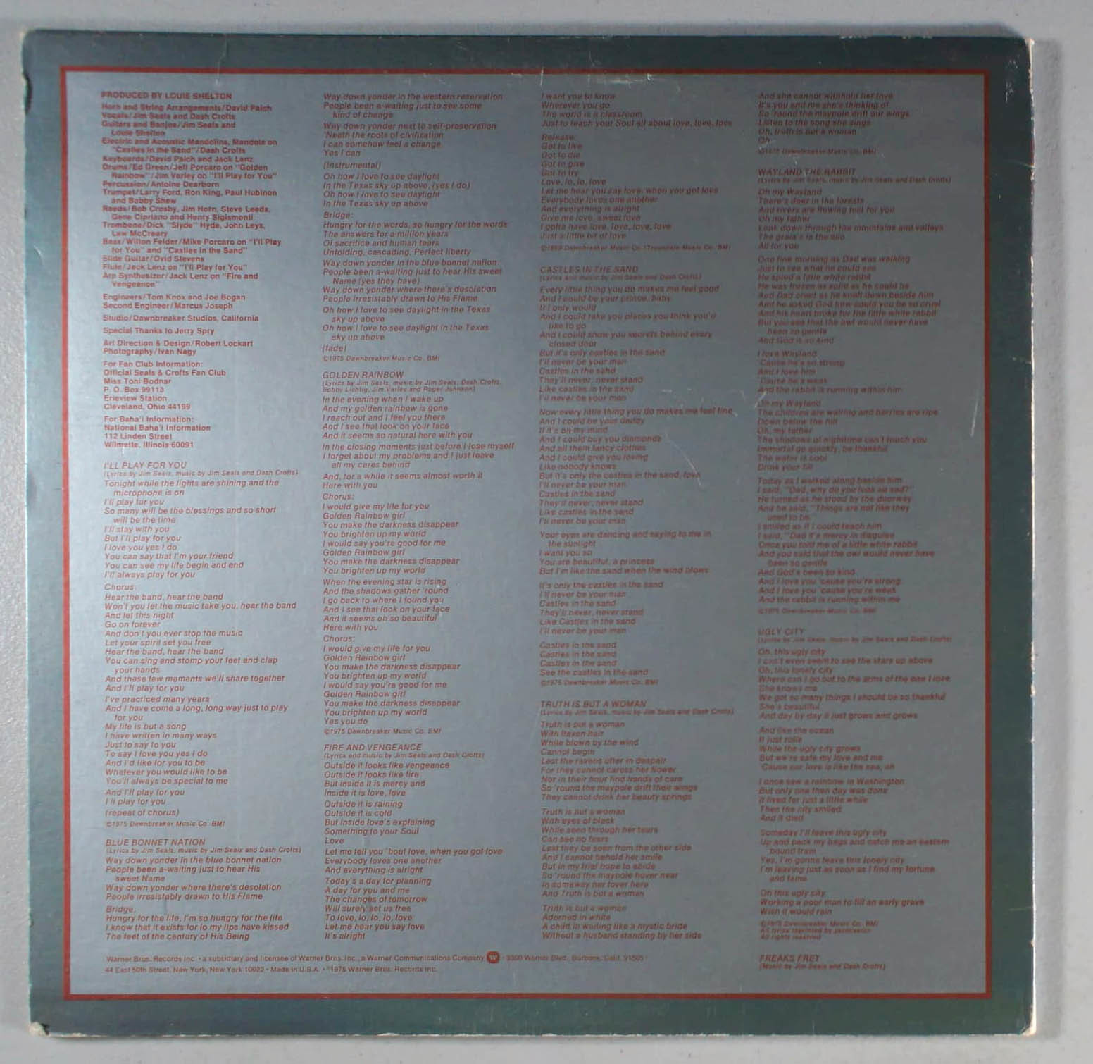 Seals and Crofts - I'll Play For You (1975) Vinyl LP • & Castles in the Sand