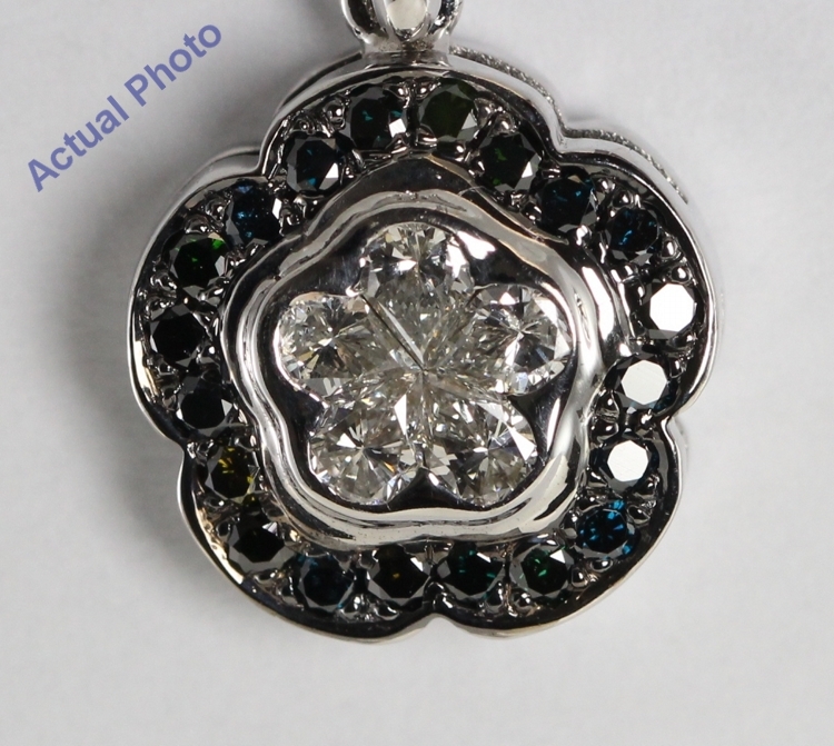 18k White Gold Invisible Setting Pear and Round Cut Diamond Flower Pendant (0.64 Ct, White Black (Color Irradiated) Diamonds, SI1 Clarity)