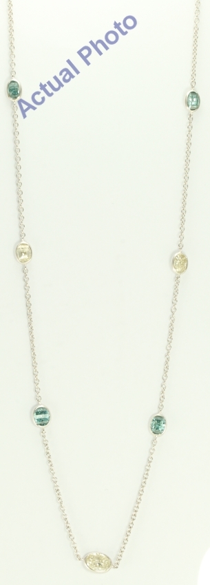 Clasp Type: Lobster Claw Diamond Information: Gem Type: Center Stone(s): Diamond Gem Creation Method: Earth Mined Stone Shape: Center stone(s):Oval Millennial Sunrise (Limited Edition), Side stone(s) 1:Oval Millennial Sunrise (Limited Edition) Number Of Stones: 7 (Center stone # 3) Color: Center stone(s):J-K, Side stone(s):blue(irradiated) Clarity: Center stone(s):SI-VS, Side stone(s) 1:SI-VS Stone Treatment: Center Stone:Not Treated, Side Stone(s) 1:Irradiated Carat: 3.3 Ct CaratsDirect2U #: 22000049