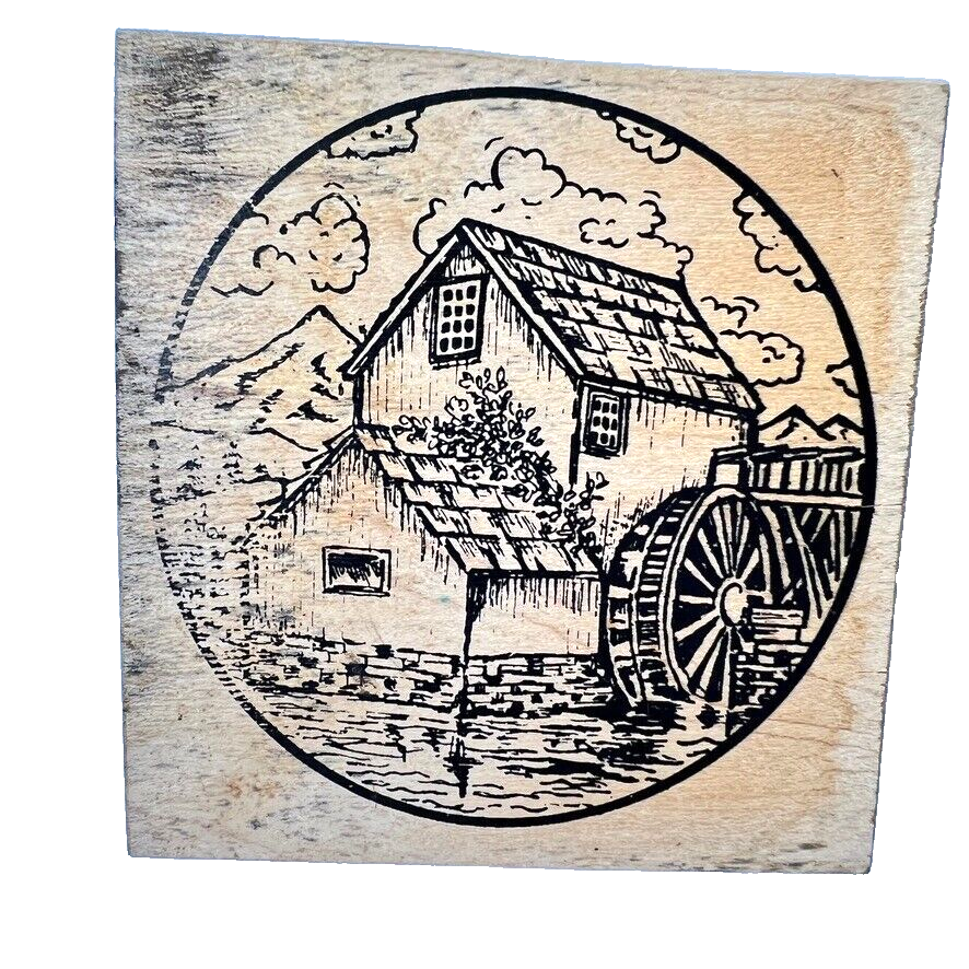 Great Impressions Water Wheel Mill Rubber Stamp H103 Mountain Scenery