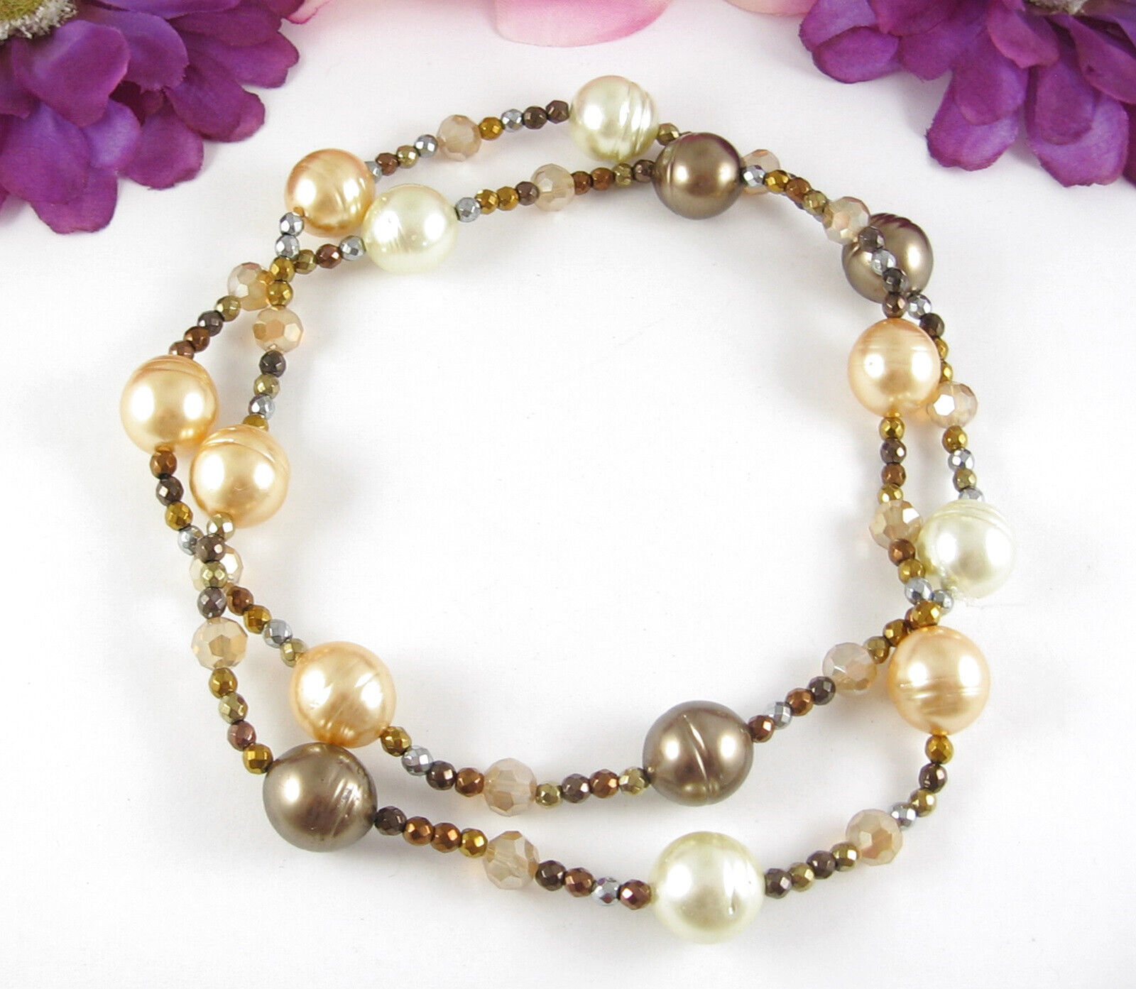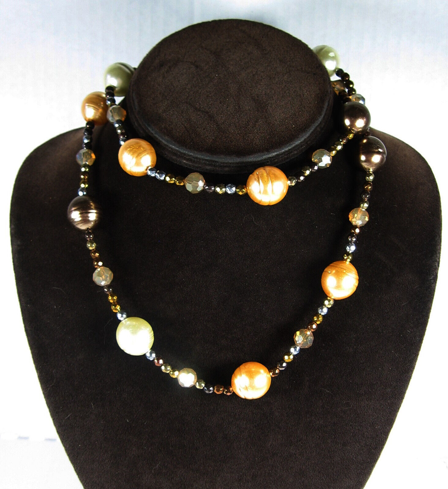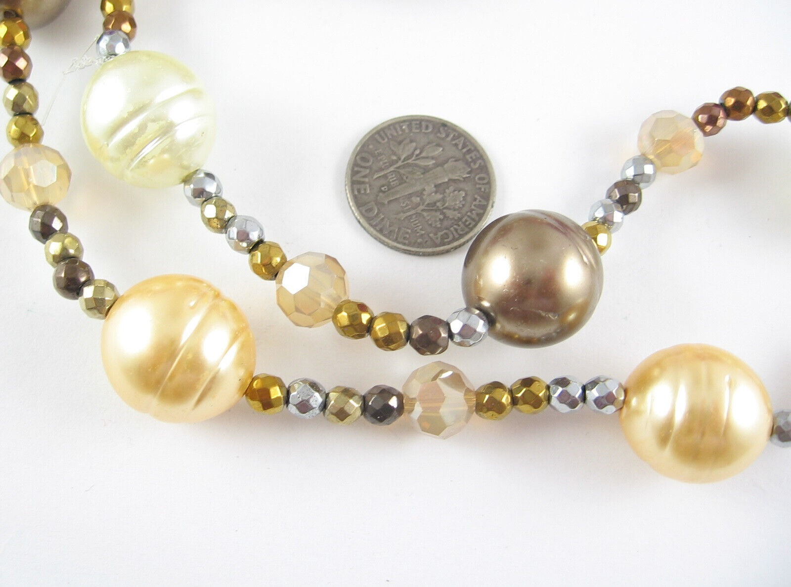 SPARKLY Glass & Metal BEADED Vintage NECKLACE Coppertone Cream Orange AB 30"