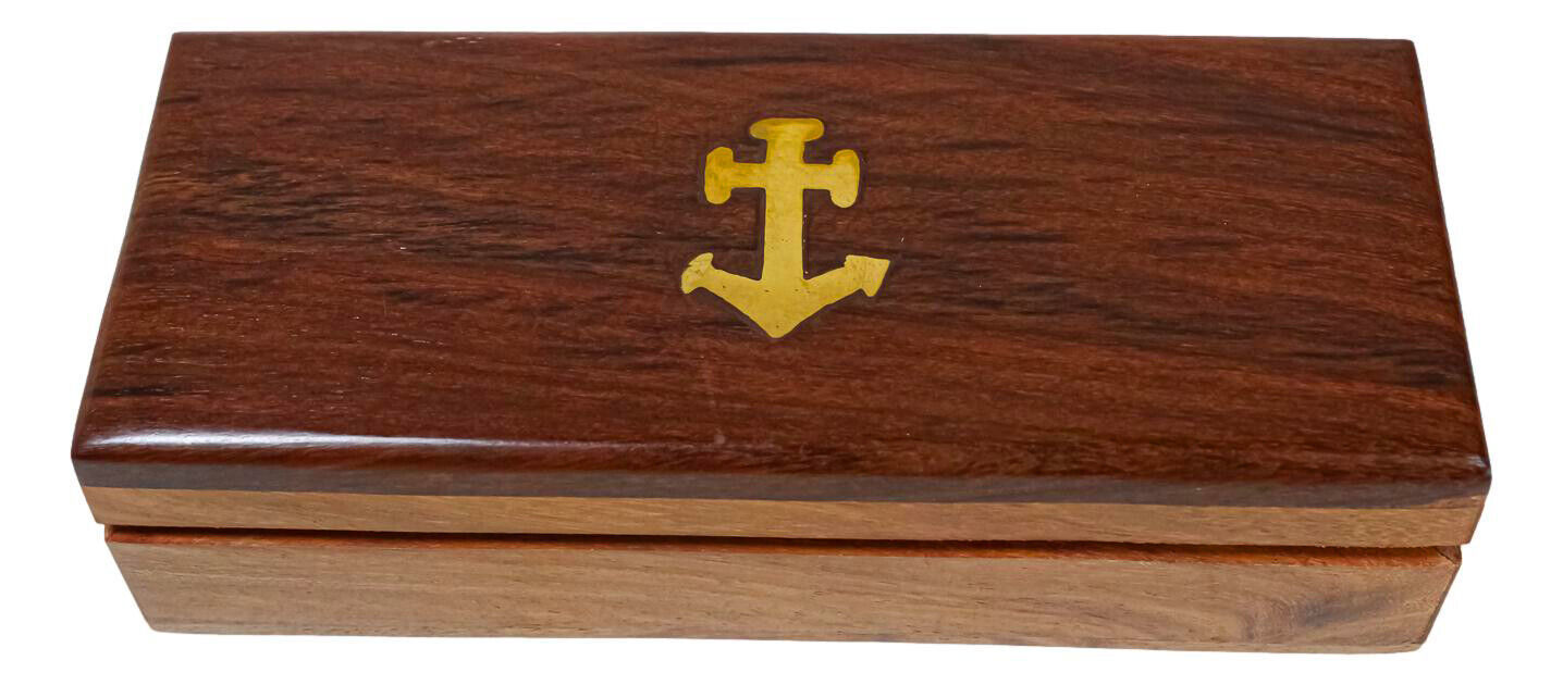 ? Discover the perfect fusion of nautical charm and elegant storage with our Brass Pirate Anchor on Rosewood Decorative Box. This exquisite piece marries the rugged allure of a brass pirate anchor with the warmth of rich rosewood, resulting in a stunning decorative box that's both captivating and practical. Crafted with attention to detail, the brass anchor sits atop a finely finished rosewood box, providing a unique storage solution for your most treasured keepsakes.