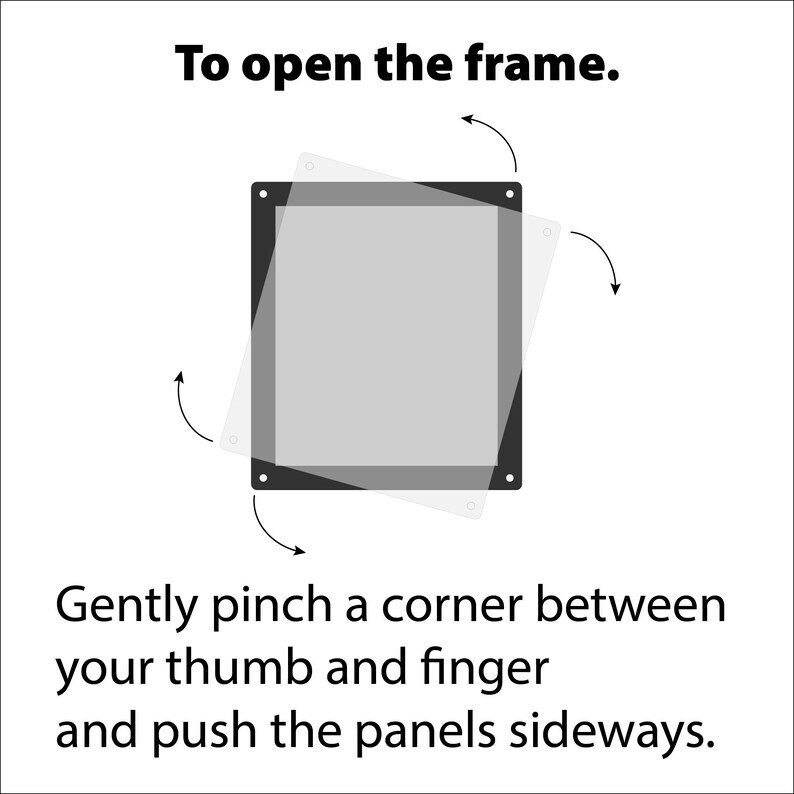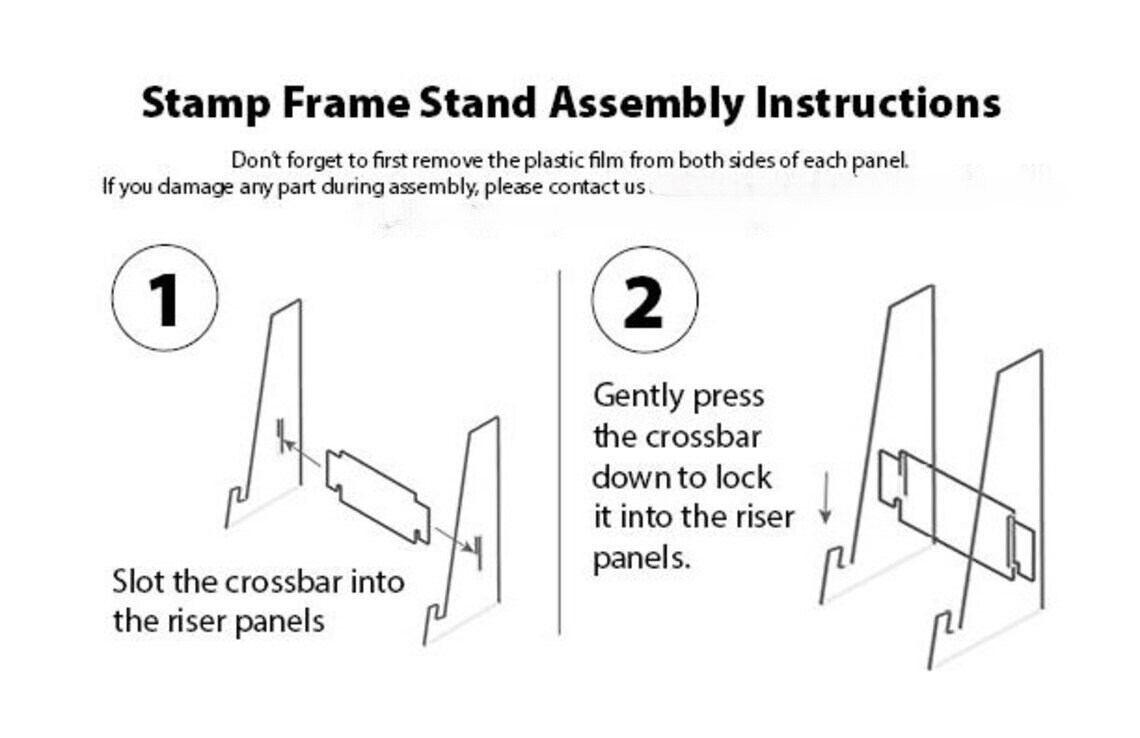 Your artwork is proudly displayed and protected within our premium acrylic display frame. The frame is made of two acrylic panels custom cut to the exact dimensions of the stamp sheet and held together with 8 powerful nickel-plated magnets. The background panel is glossy black acrylic.