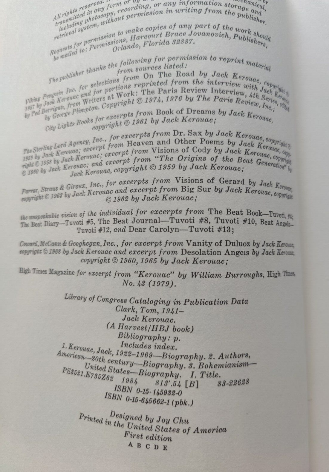 Jack Kerouac a biography by Tom Clark Signed 1984