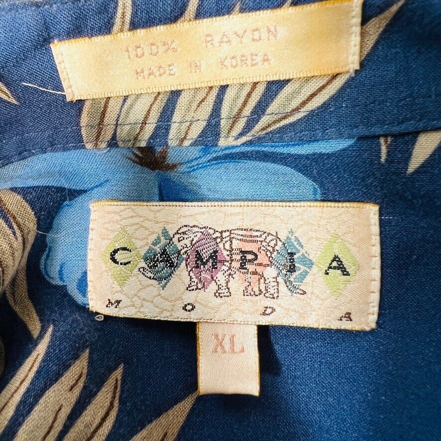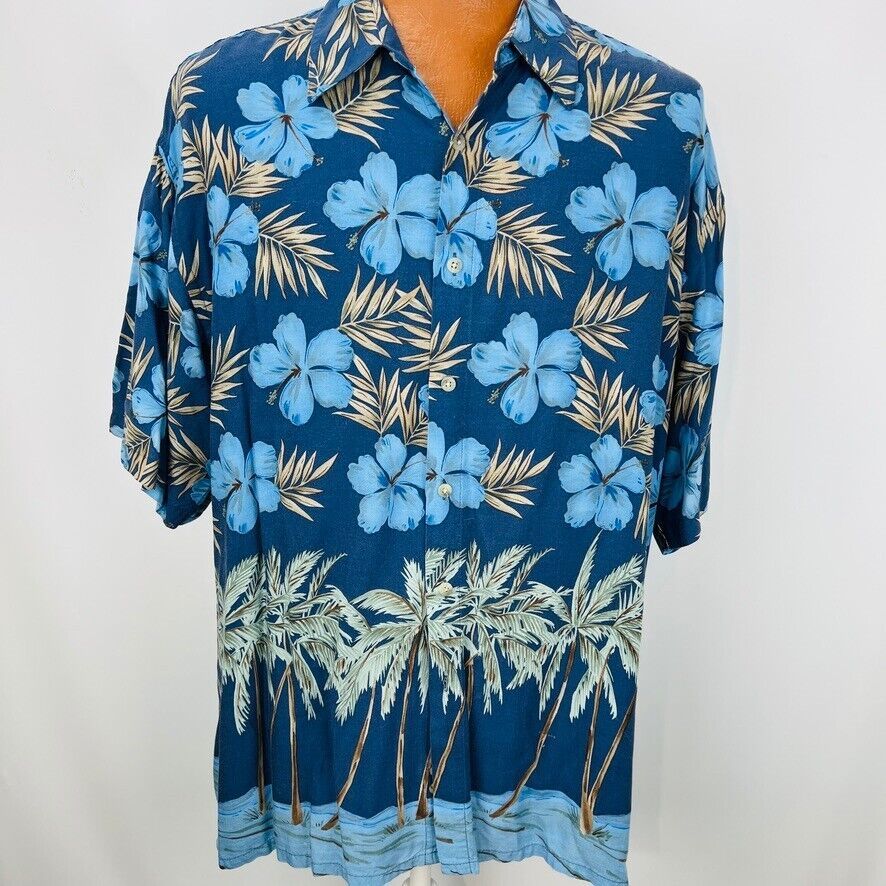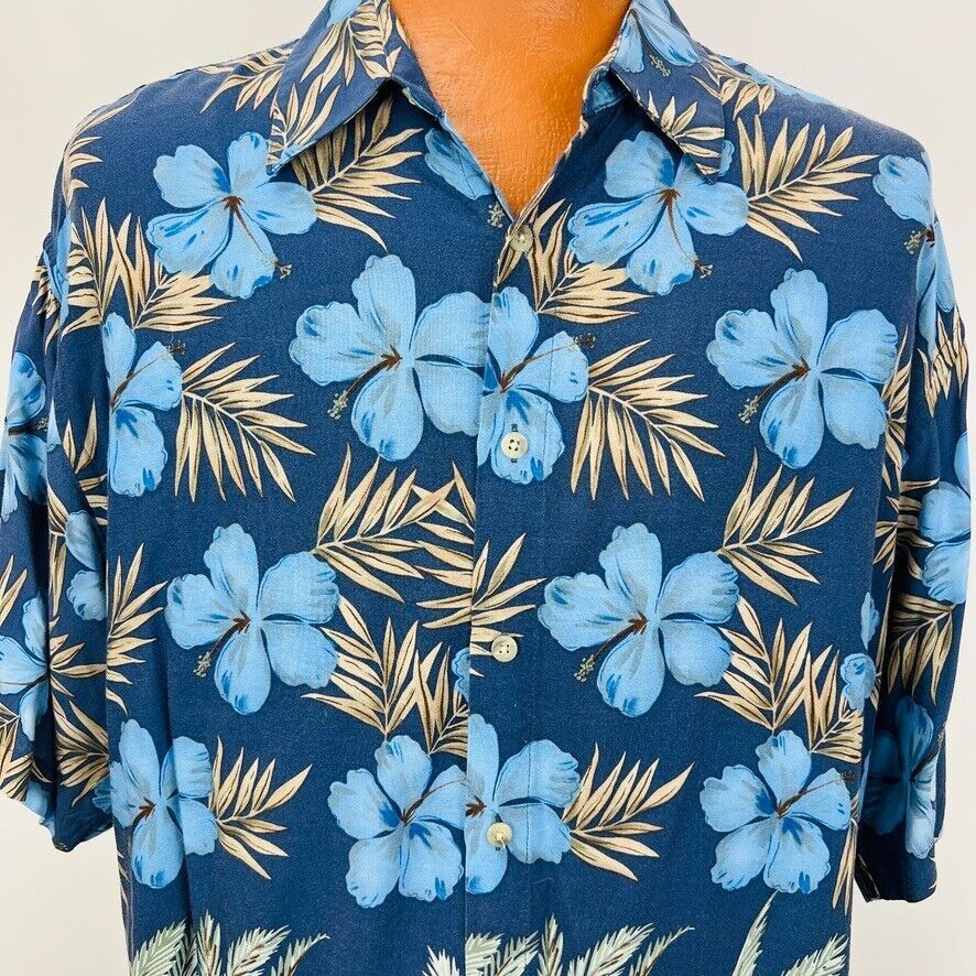 Campia Moda Hawaiian Aloha XL Shirt Hibiscus Flower Palm Trees Tropical Blue