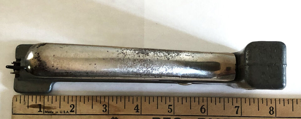 Well built working staple gun that is 7.5" long and 1" wide at staple end and 1.5" wide at rear. Unit has an industrial grey type finish with an oil hole at the front for the driving mechanism, a clean unit.