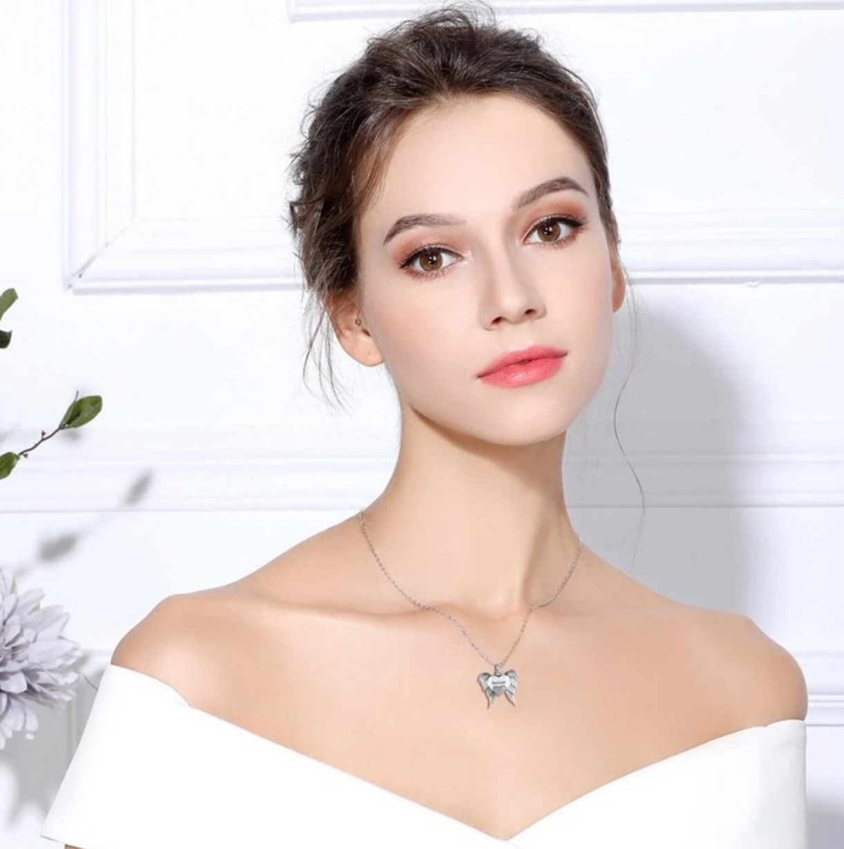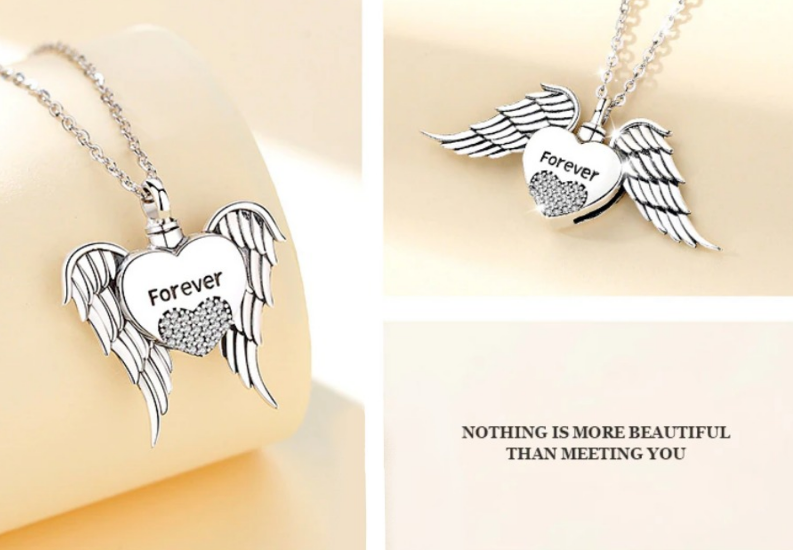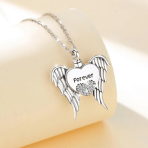 Elegant 925 Sterling Silver Angel Wing Zirconia Heart Cremation Pendant Necklace