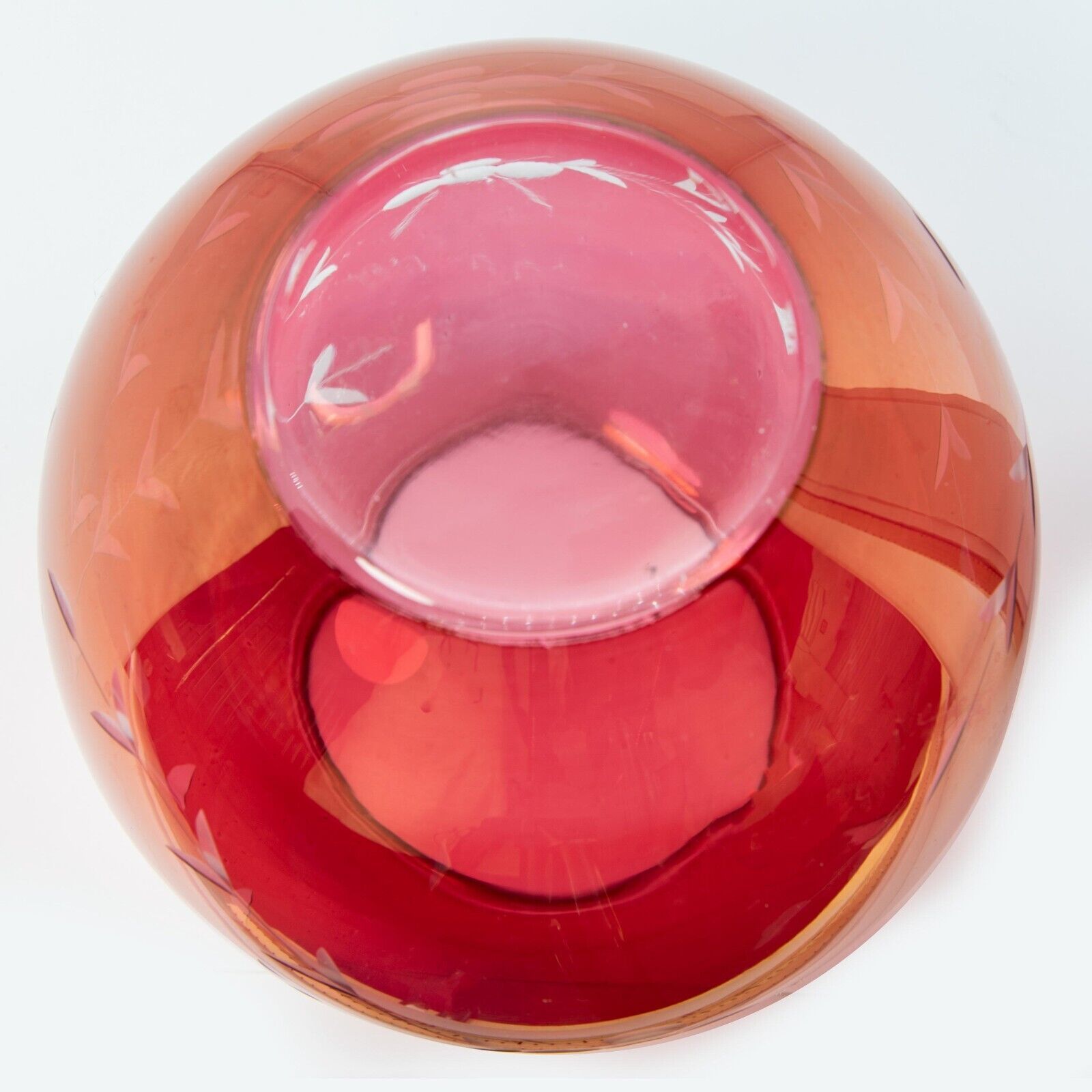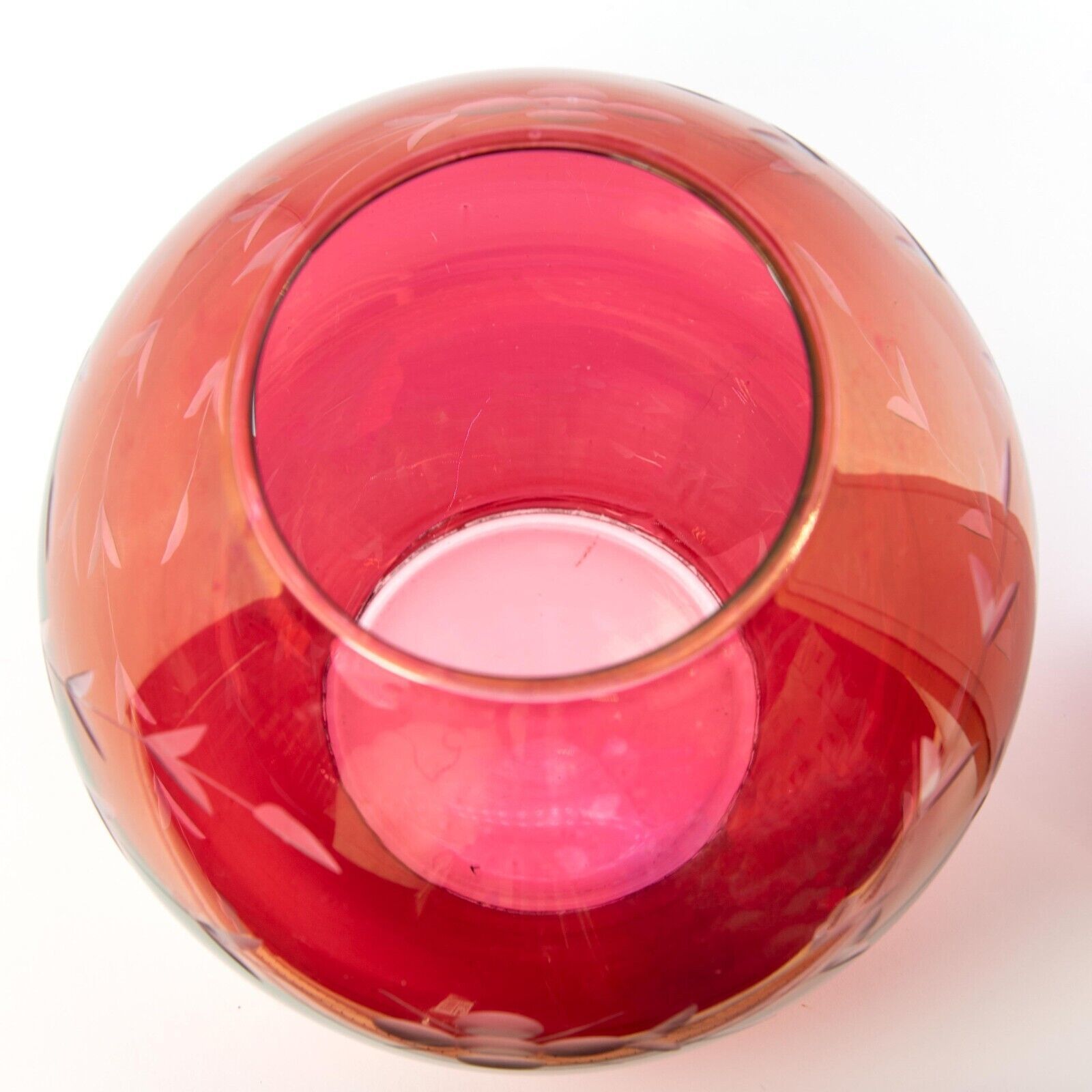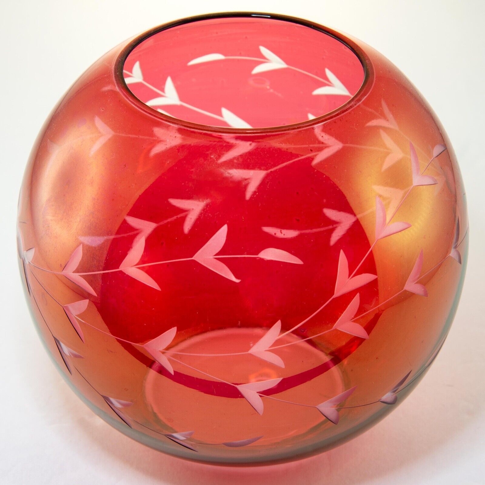 This stunning Etched Vine Red Round Vase is the perfect addition to any home decor. The intricate etched vine design adds a touch of elegance and sophistication to the already beautiful red glass. This vase would make a lovely centerpiece or accent piece in any room. The round shape allows for versatility in arrangement options, while the vivid red hue adds a pop of color to any space. Don't miss out on the opportunity to own this gorgeous piece of glassware.