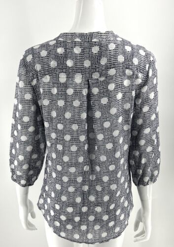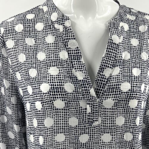 Chicos Top Size 0 / S Navy Blue White Cotton Split Neck Woven Cotton Womens
