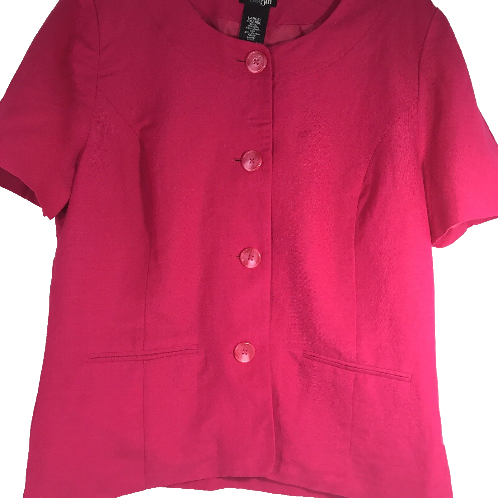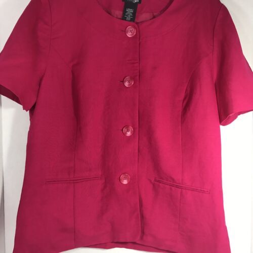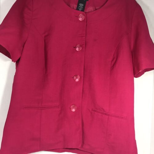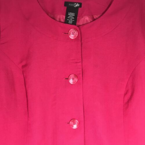 East 5th Size L Hot Pink Linen Rayon Button Down Lined Jacket Blouse Top
