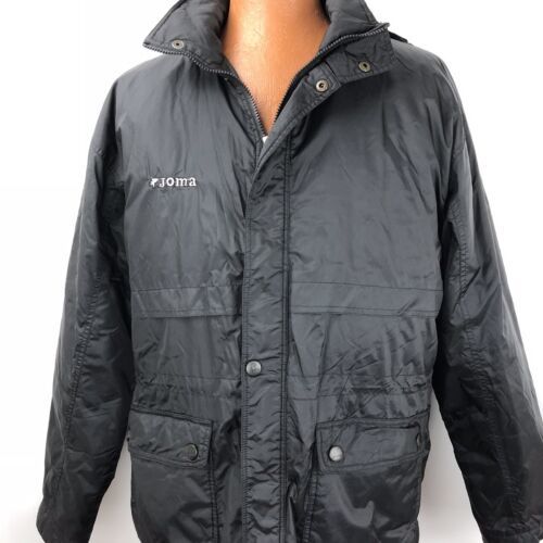 Joma Mens Black Jacket Insulated Winter Coat Size Large Zip Front Hidden Hood