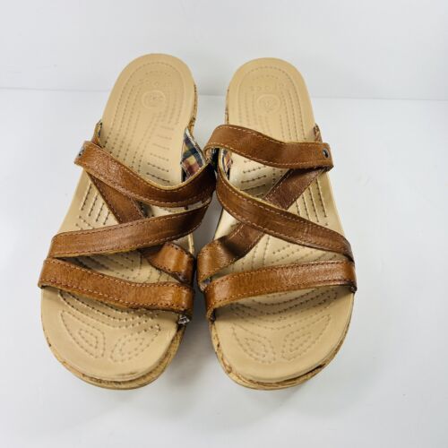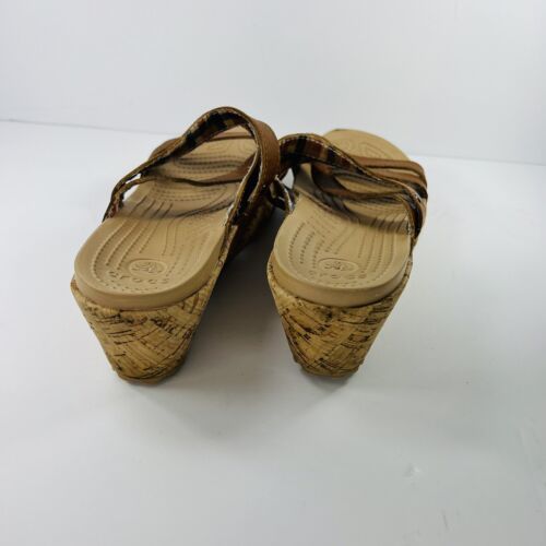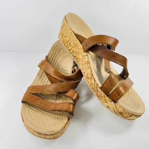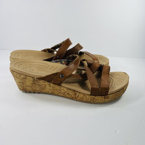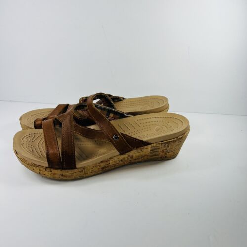 Crocs Leigh 8 Cork Brown Wedge Sandals Leather Straps 11847 Womens