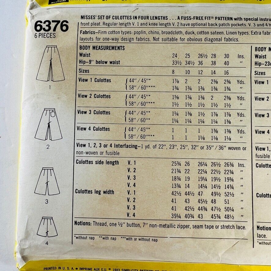 Vtg Simplicity Pattern 4 Culottes Center and 50 similar items