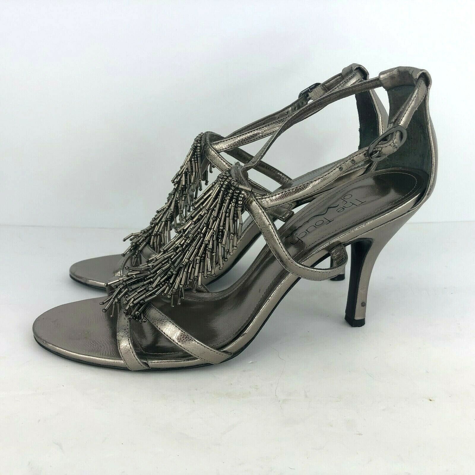 A Touch of Nina 7 M Silver Bronze Strappy Embellished Tassle Heel Sandal Dressy