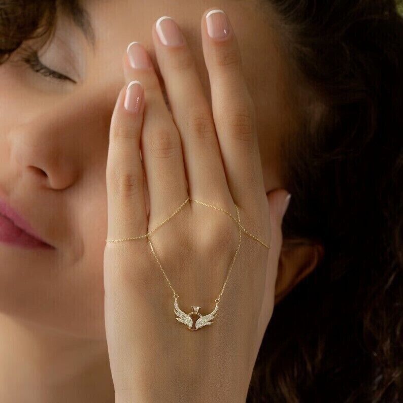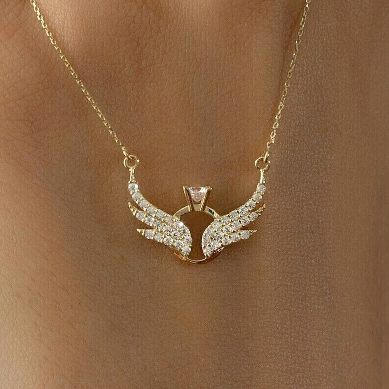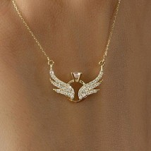 1.20Ct Round Cut Lab-Created Diamond Women Wings Necklace 14k Yellow Gold Plated