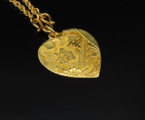 CHINESE 24K GOLD - Vintage Characters & Flower Heart Chain Necklace - GN049