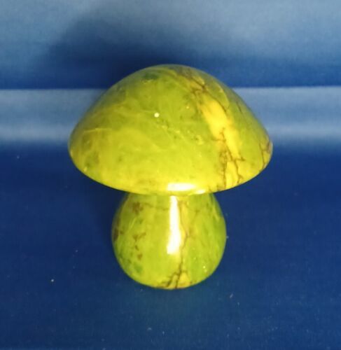 Vintage MCM Italy Hand Carved Alabaster Stone Green Mushroom Paperweight