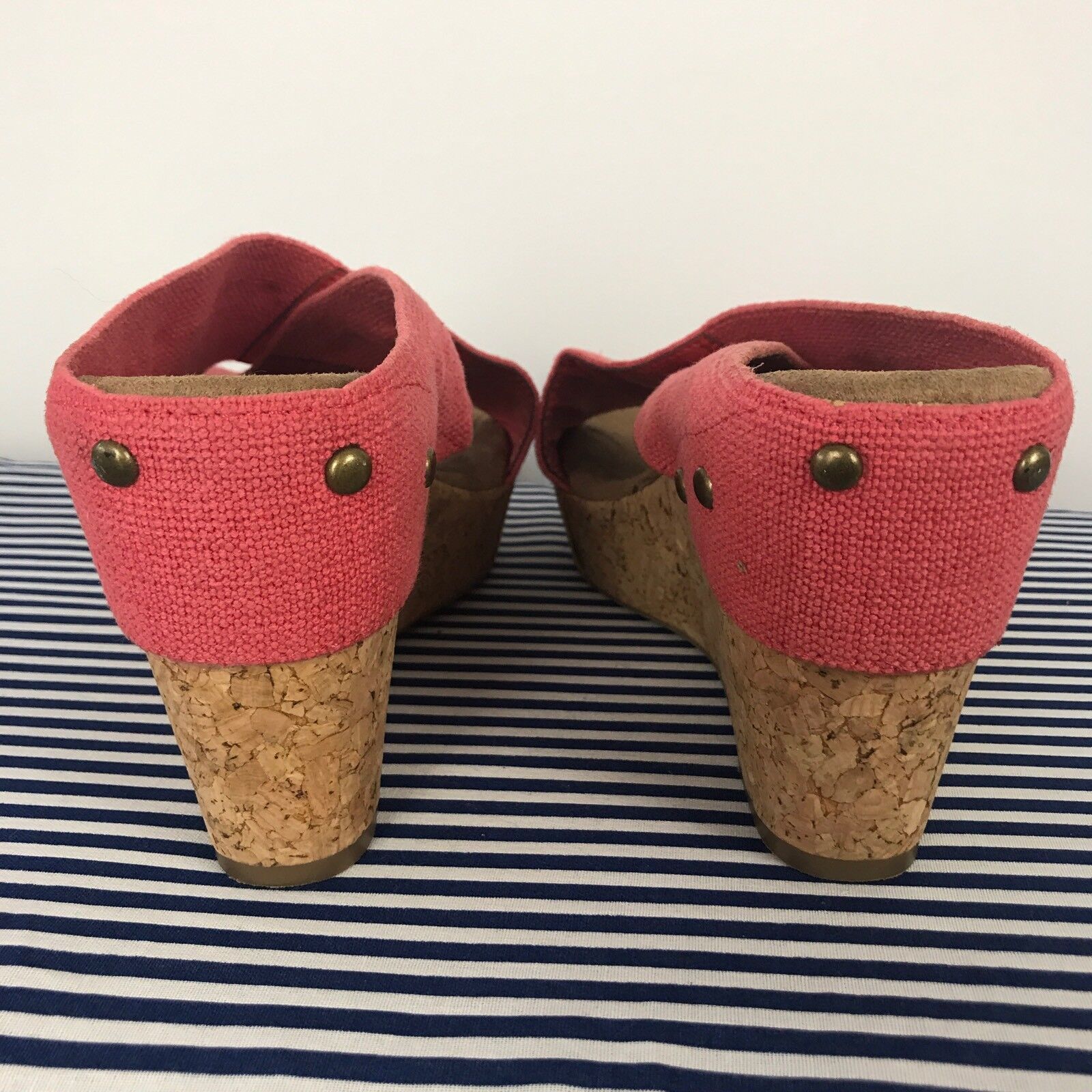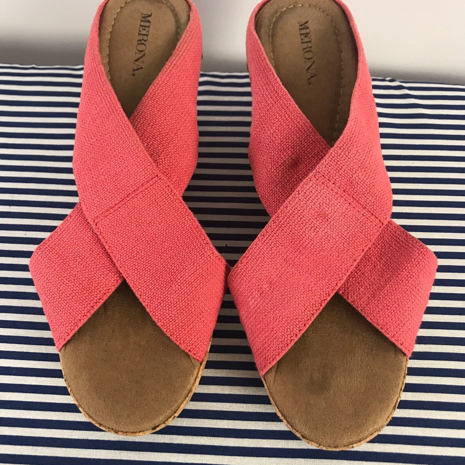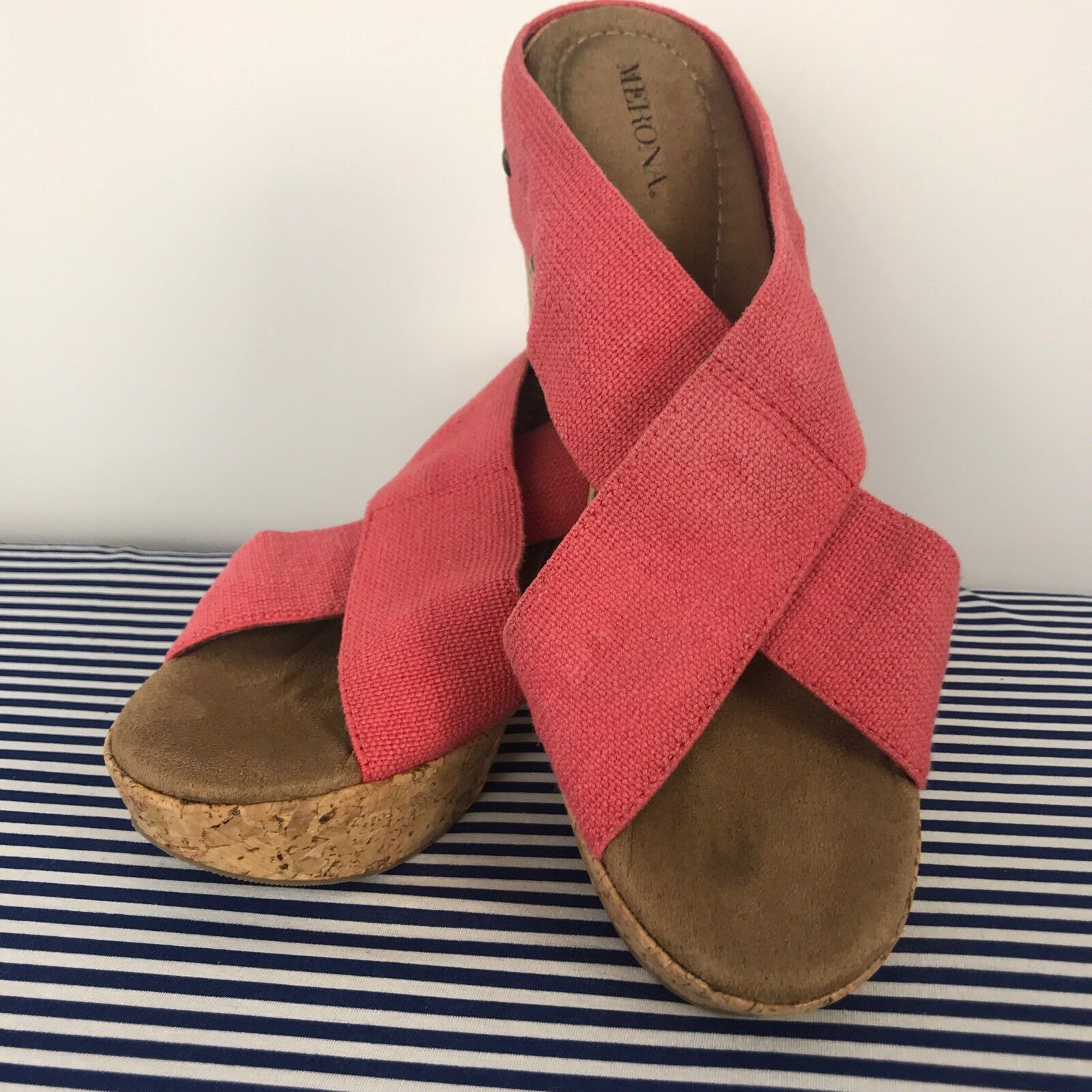 Merona Womens Sz 9.5 Orange Canvas Platform Criss Cross Cork Wedge Sandal