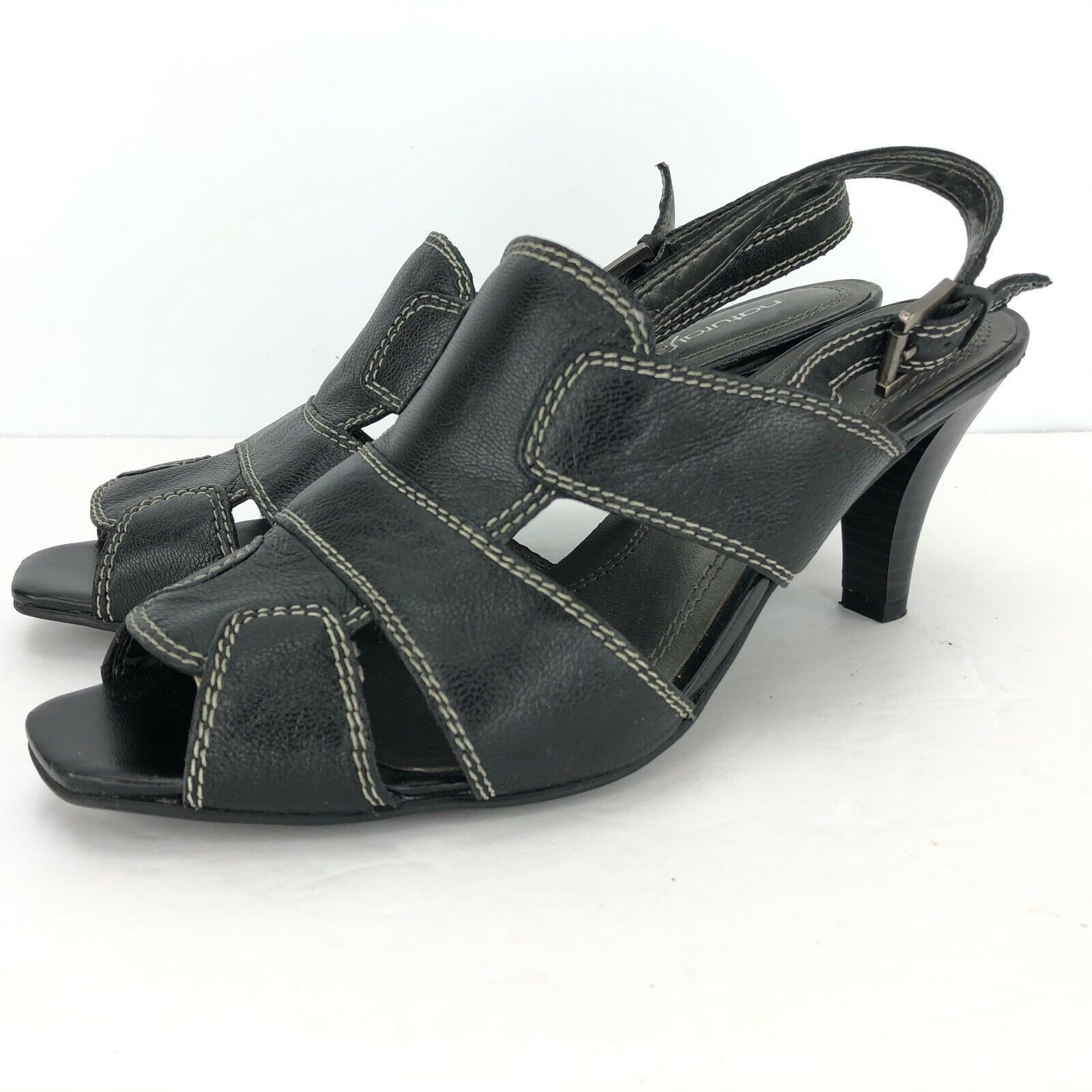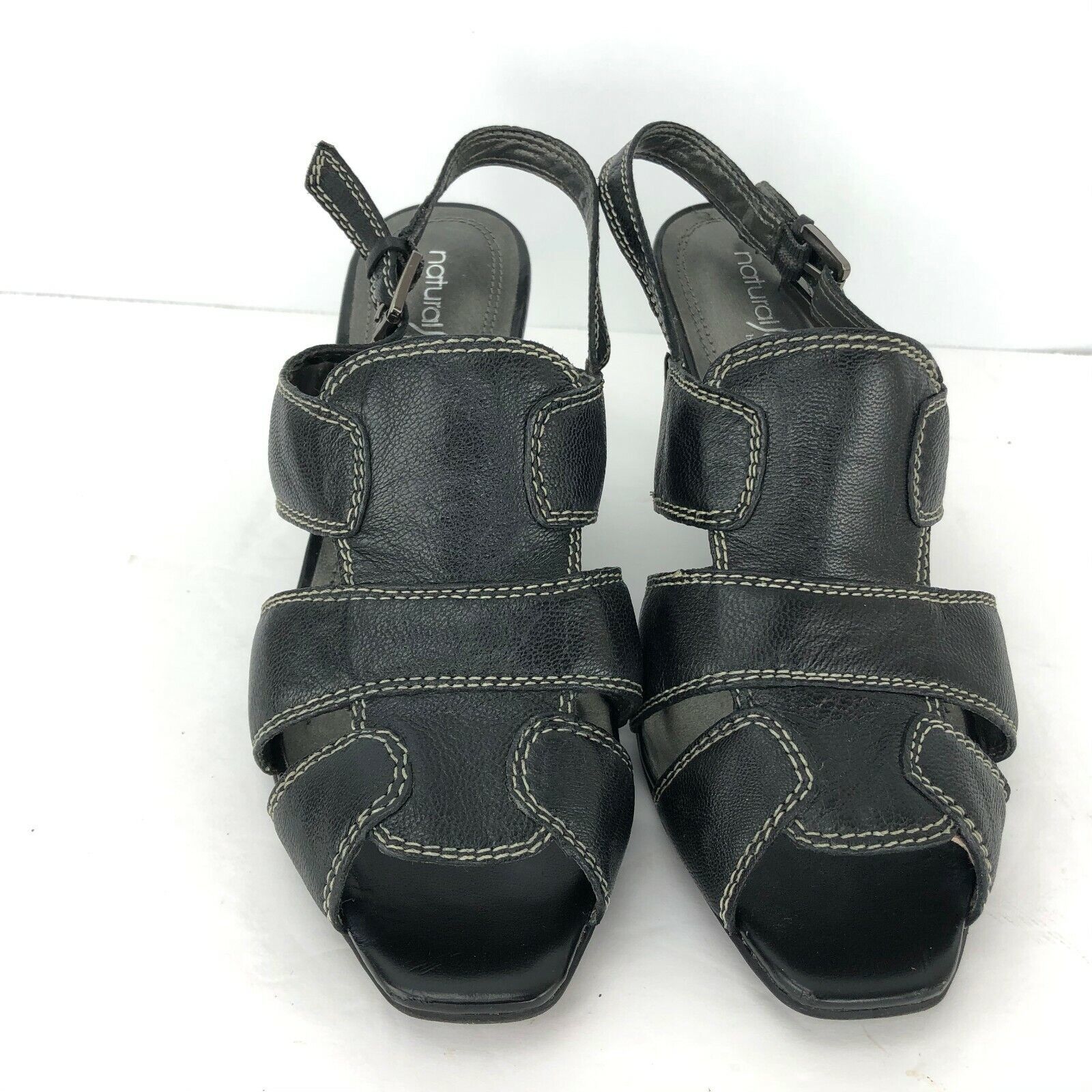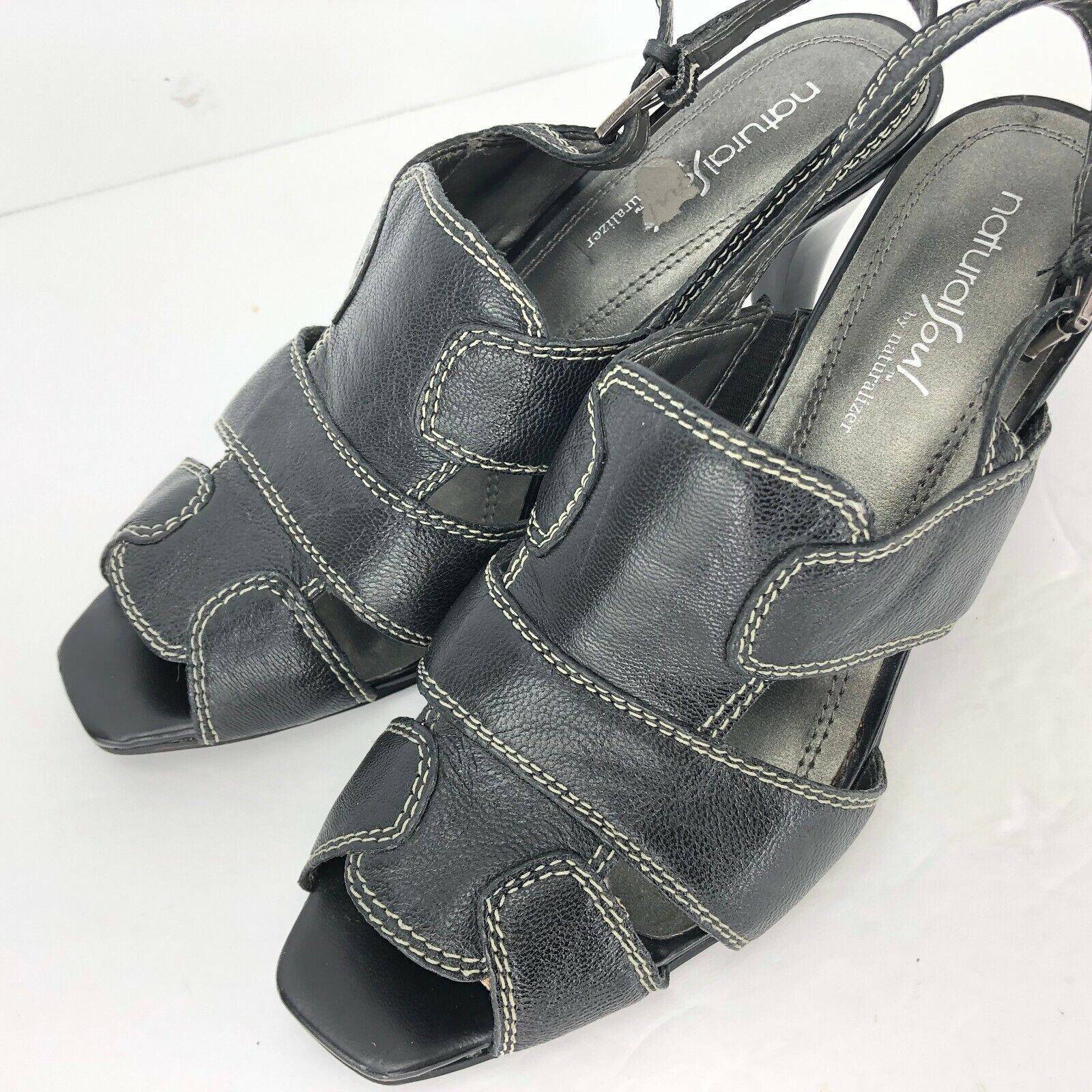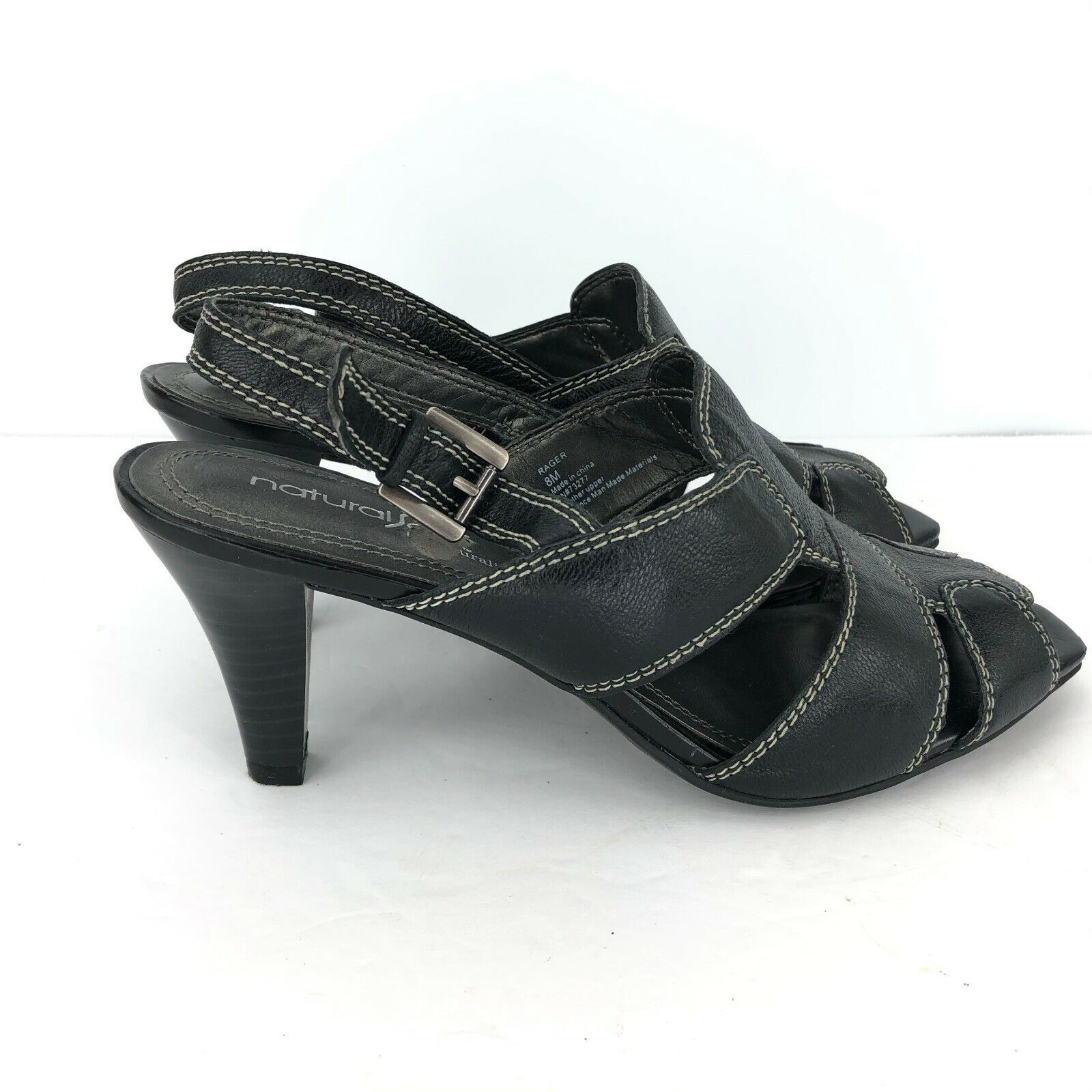 NaturalSoul By Naturalizer Size 8 Rager Black Peep Open Toe Sling Back Heels