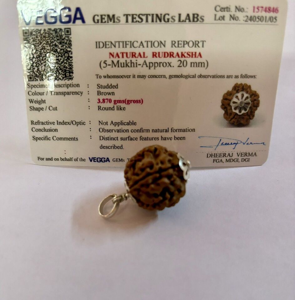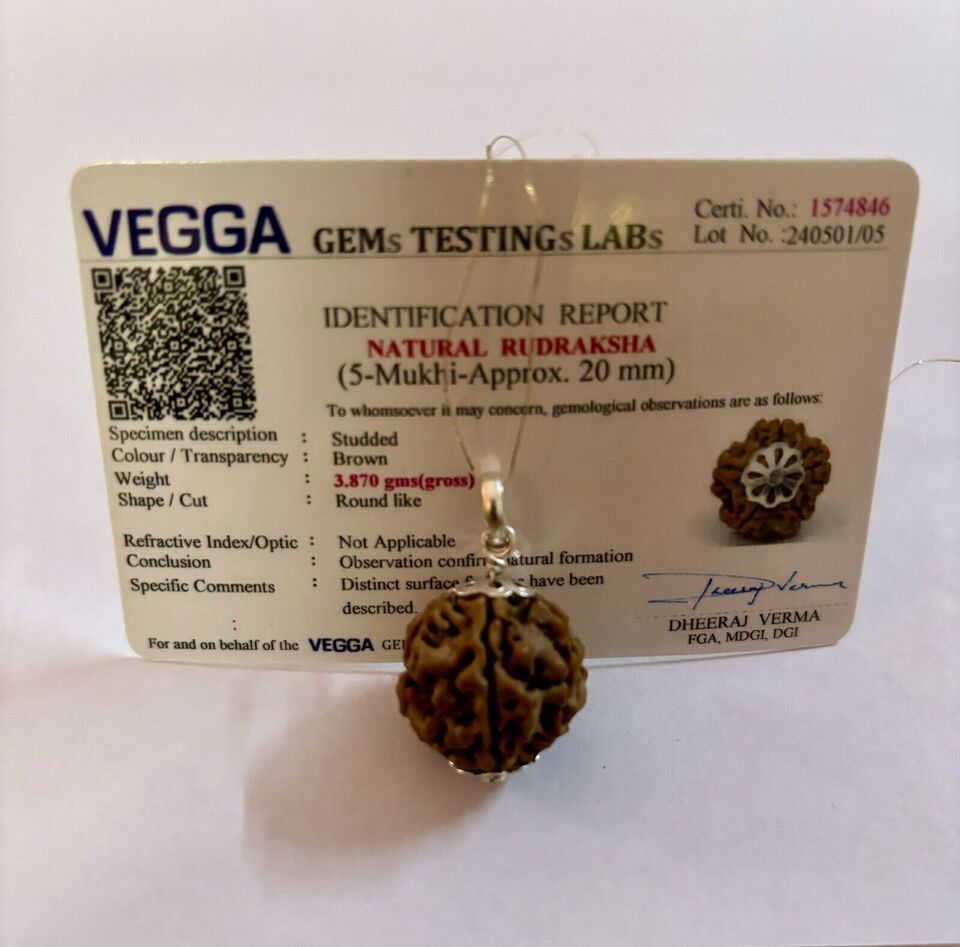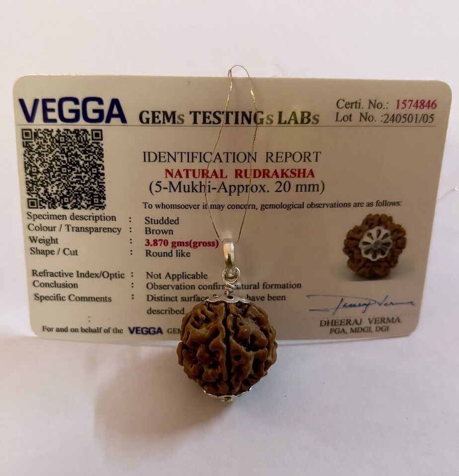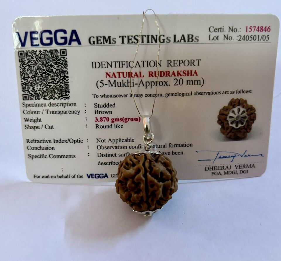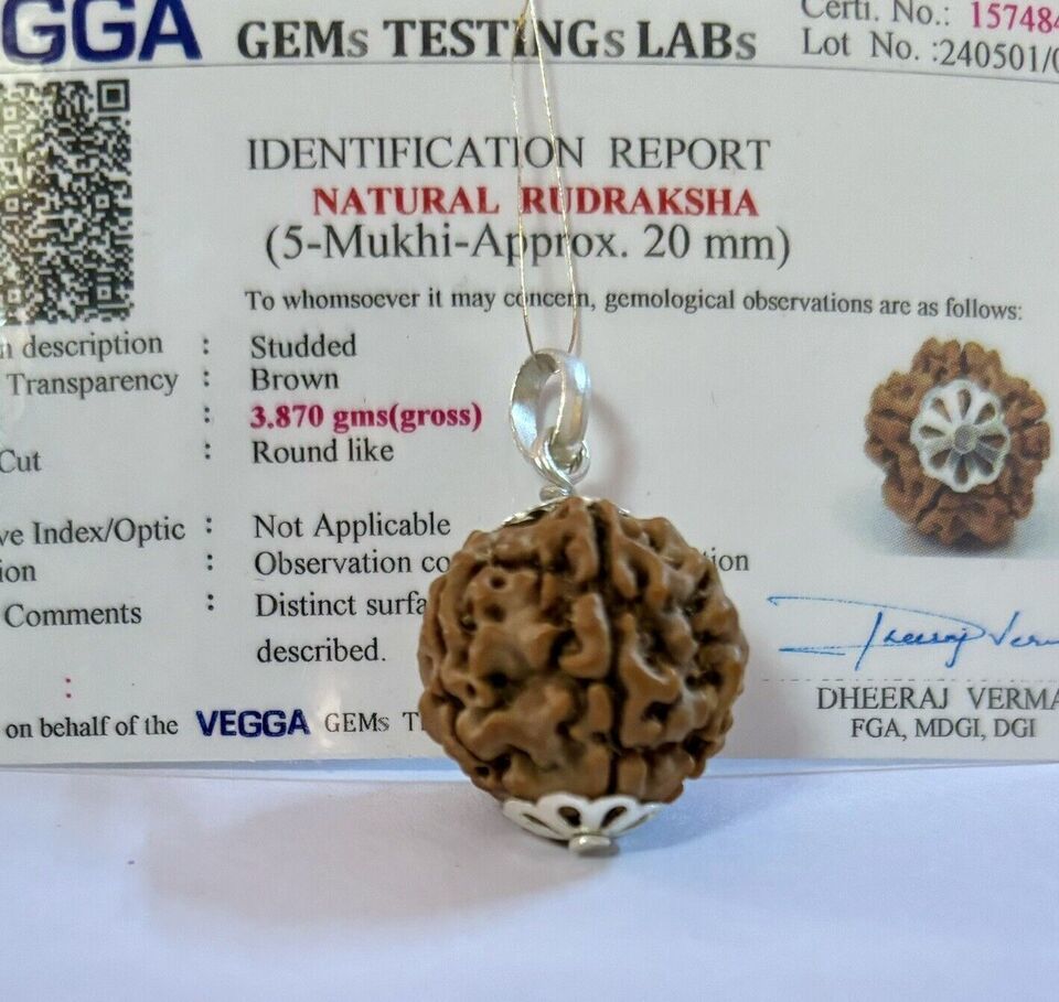 Laborzertifizierter 925er Silber + 5 Mukhi RUDRAKSHA Rudraksh Anhänger, 20...