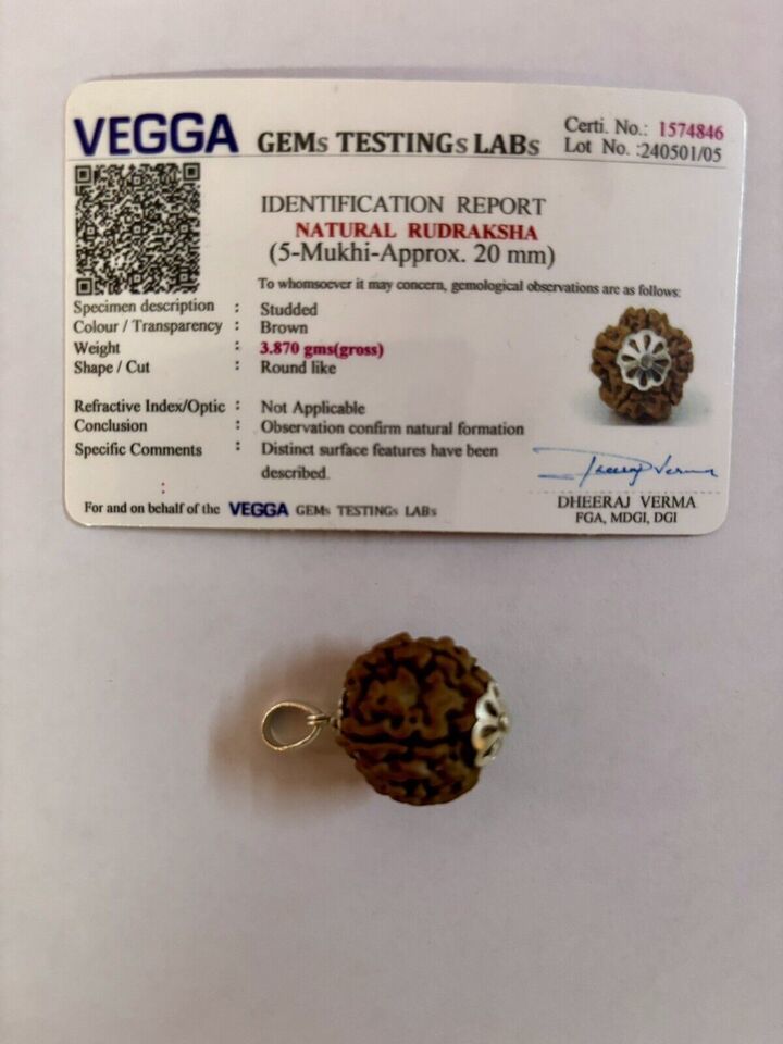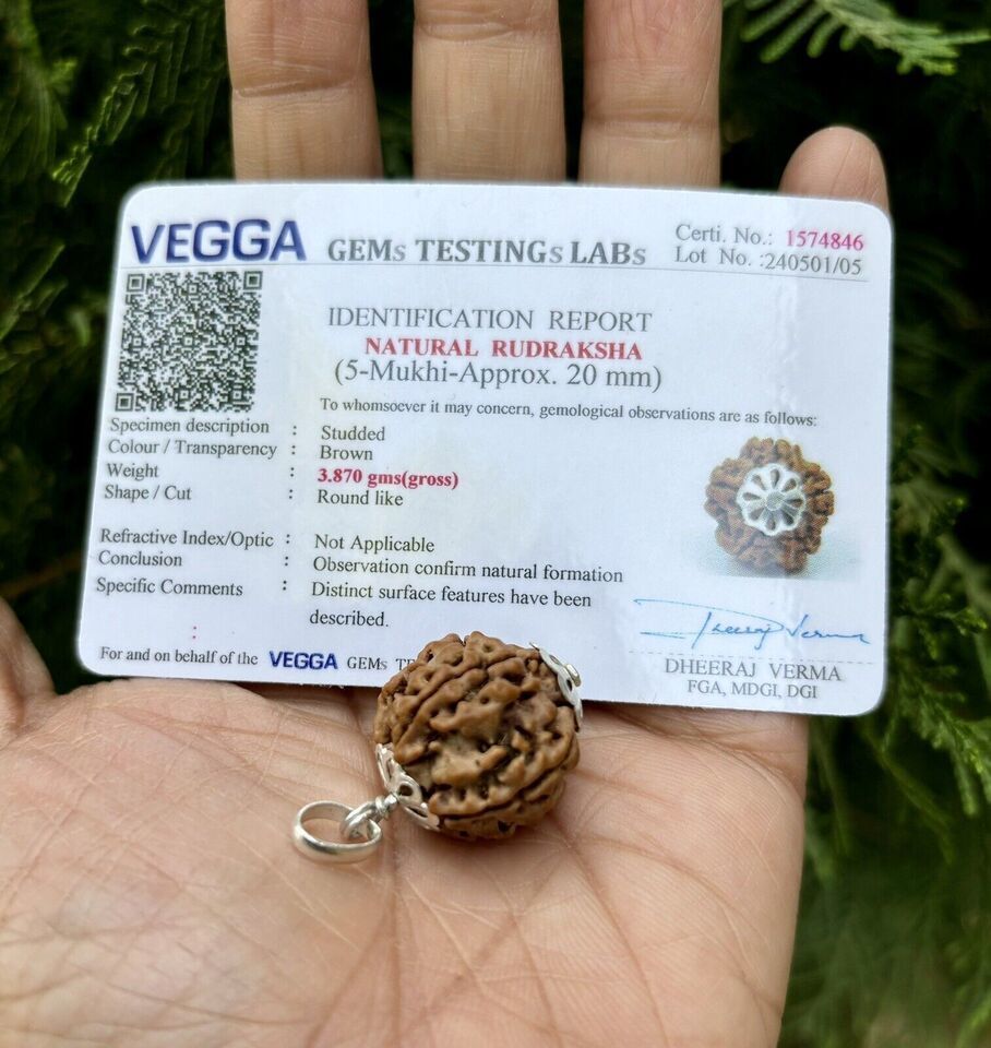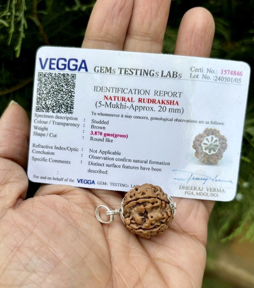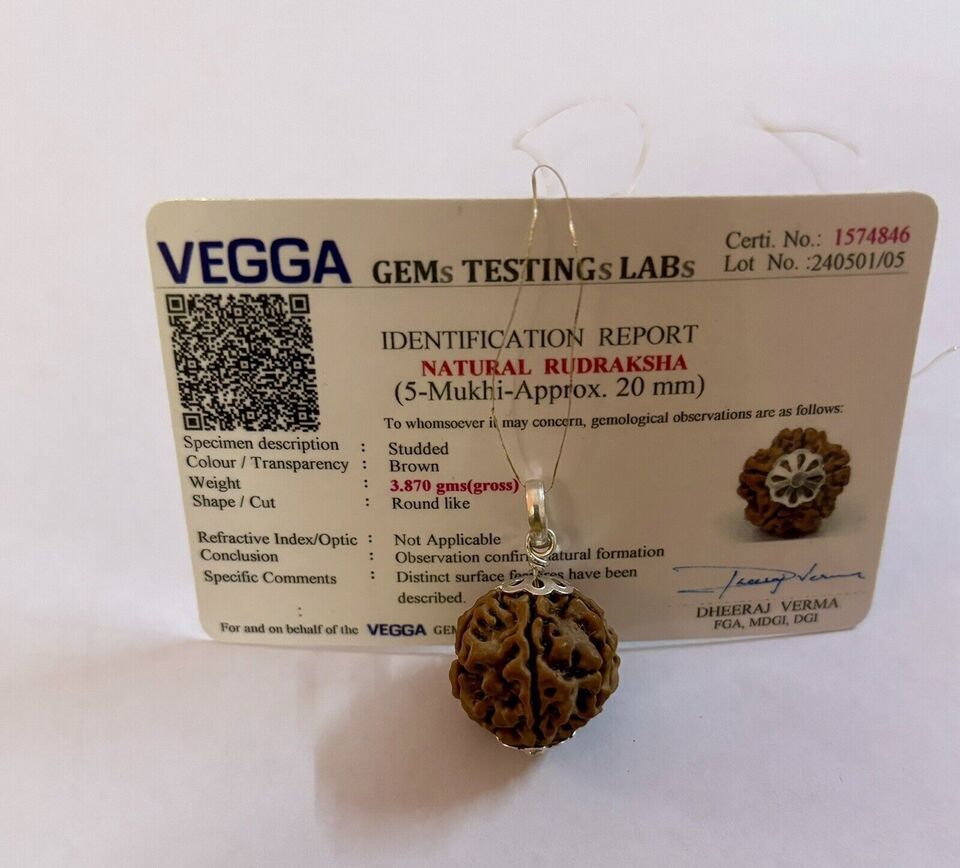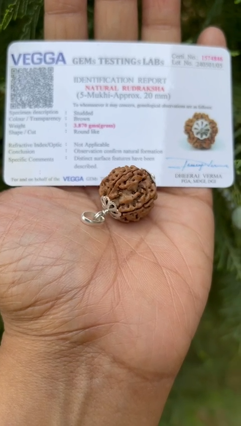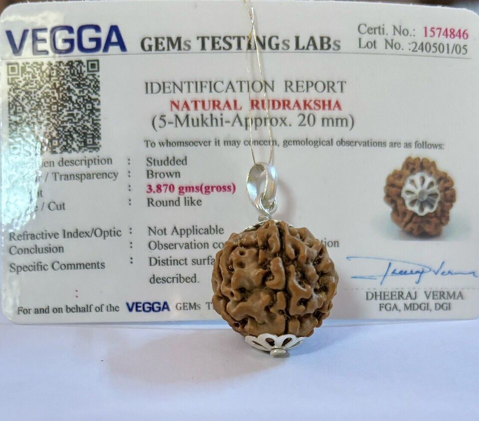 Laborzertifizierter 925er Silber + 5 Mukhi RUDRAKSHA Rudraksh Anhänger, 20...