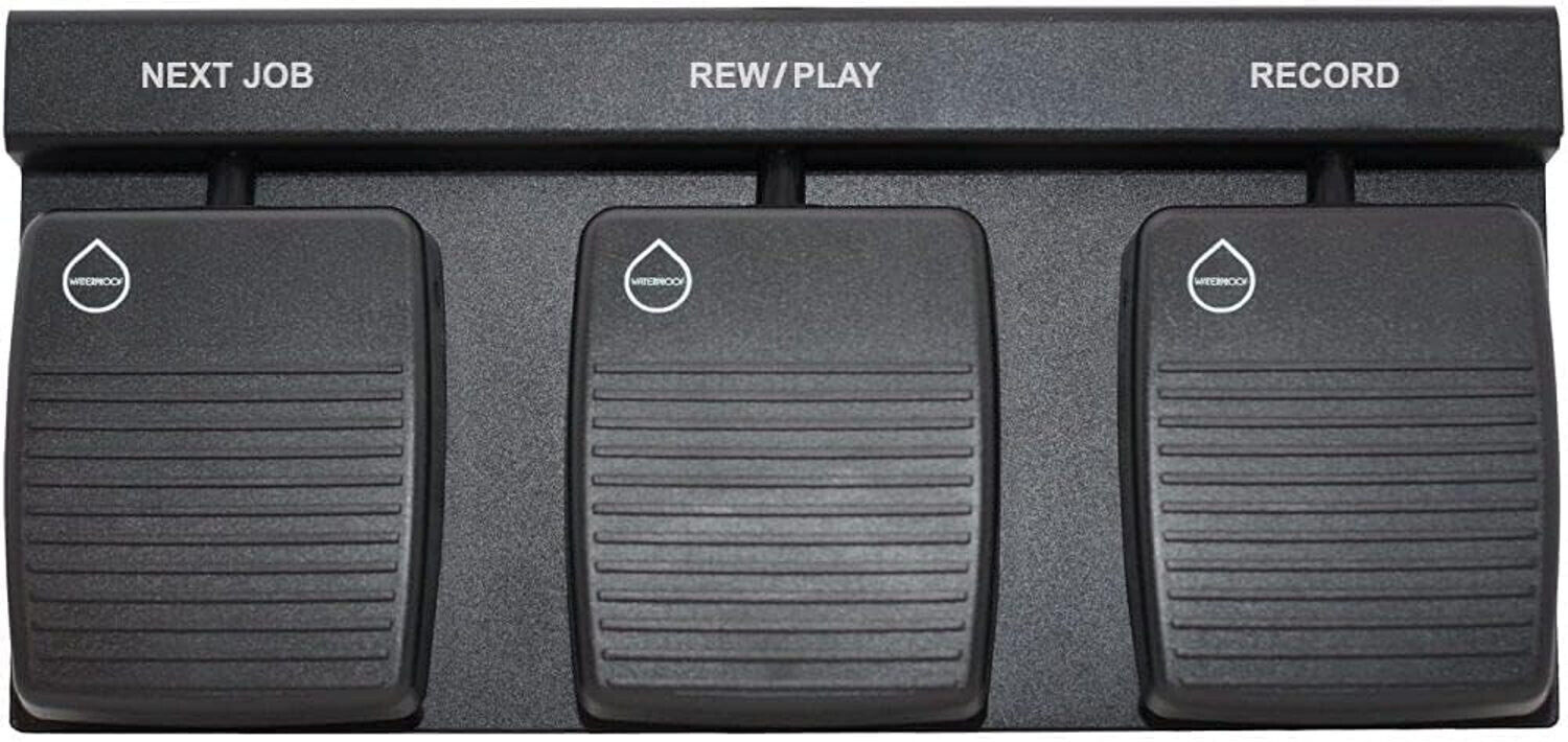 DAC FP-110-USB/W Waterproof 3-Function USB Foot Pedal Control For use with Computers; Works with PcDictate II; 3-Function Control with NEXT JOB, REW/PLAY RECORD; USB Connector; Durable Metal Shell Will Withstand Years of Use; Rubber Feet Keep the Foot Control in Place; 9 Foot Cord; Dimensions 5.5" Tall x 12" Wide x 1.5" Deep