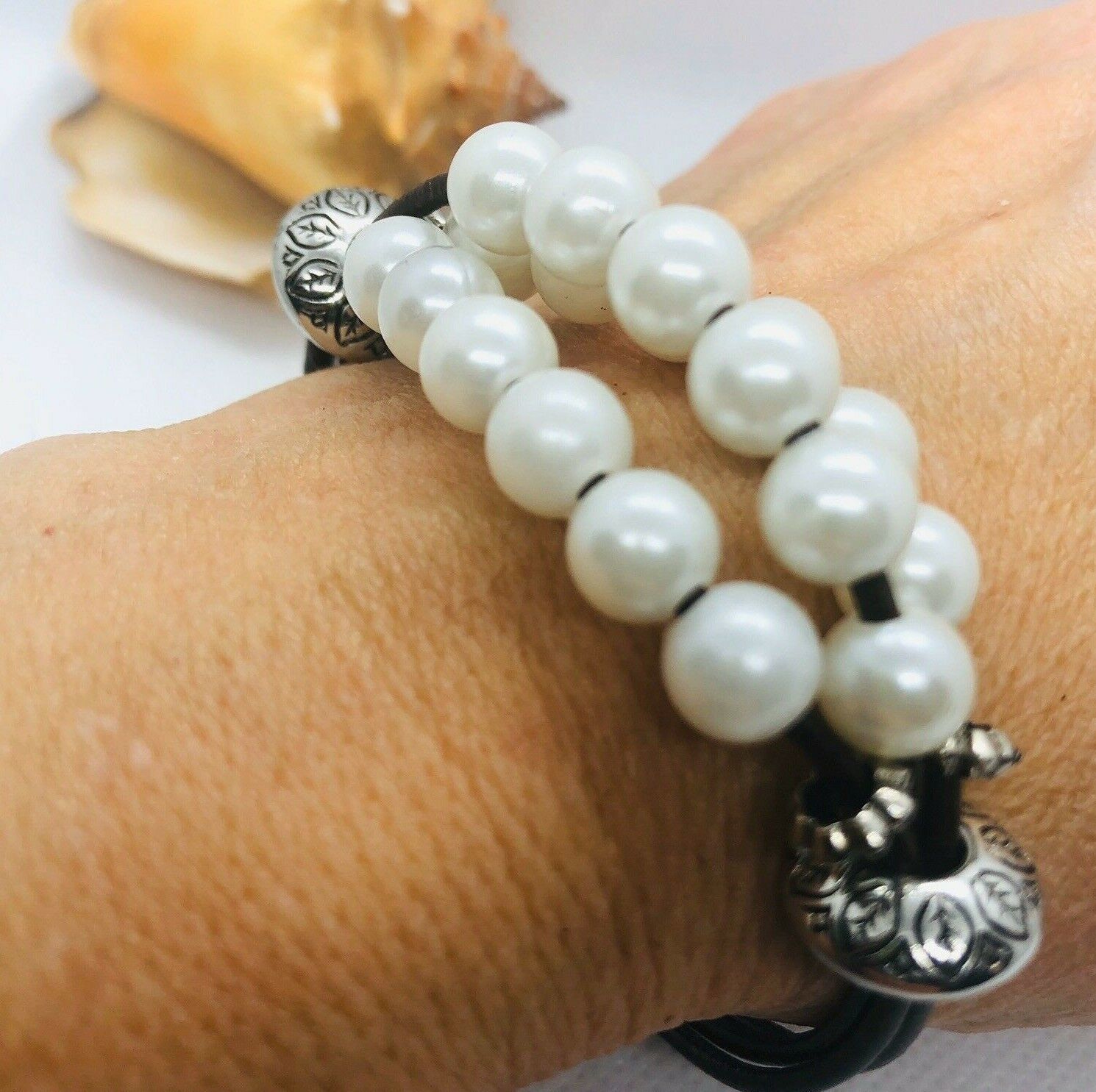 Pearls On Leather Bracelet White Faux Pearls and similar items