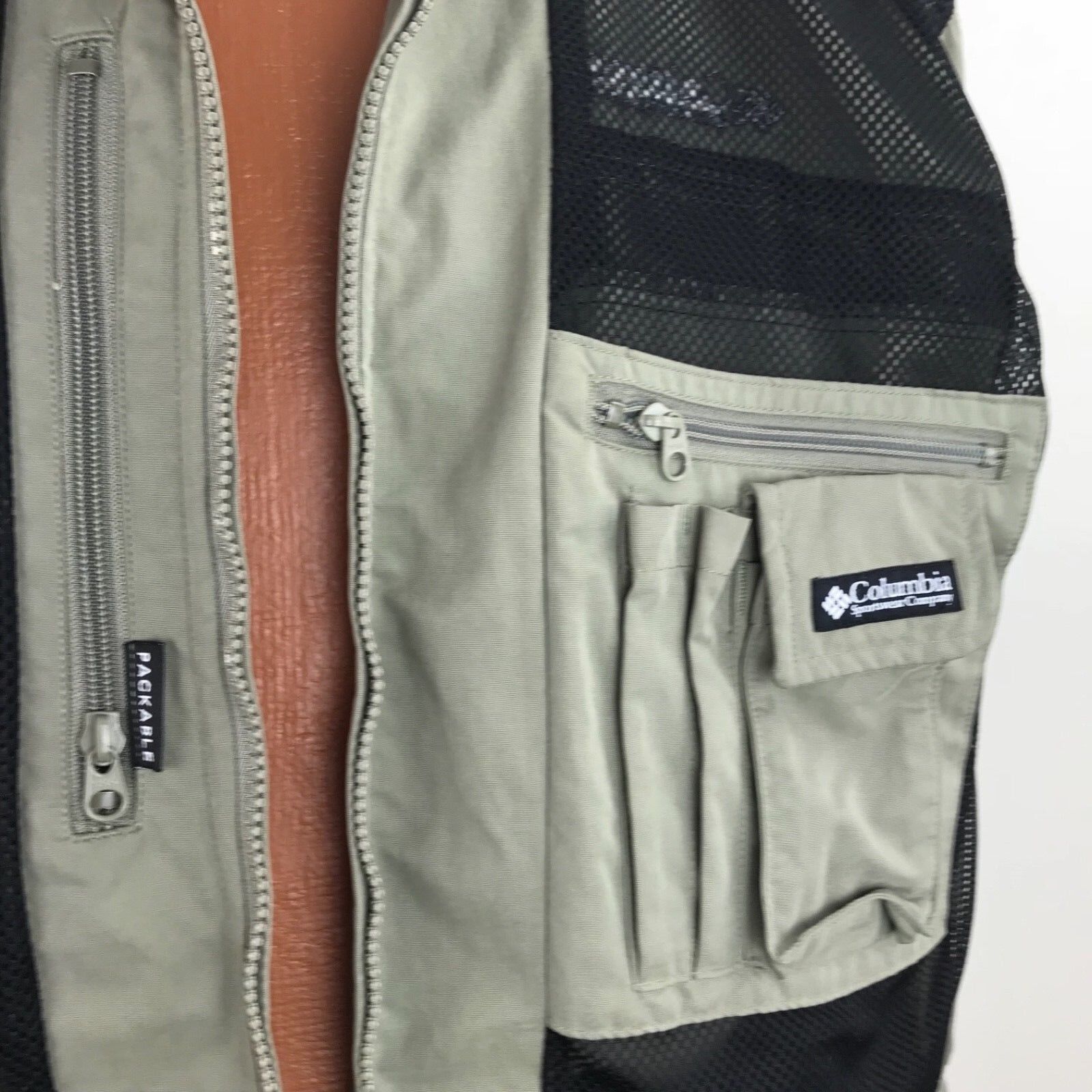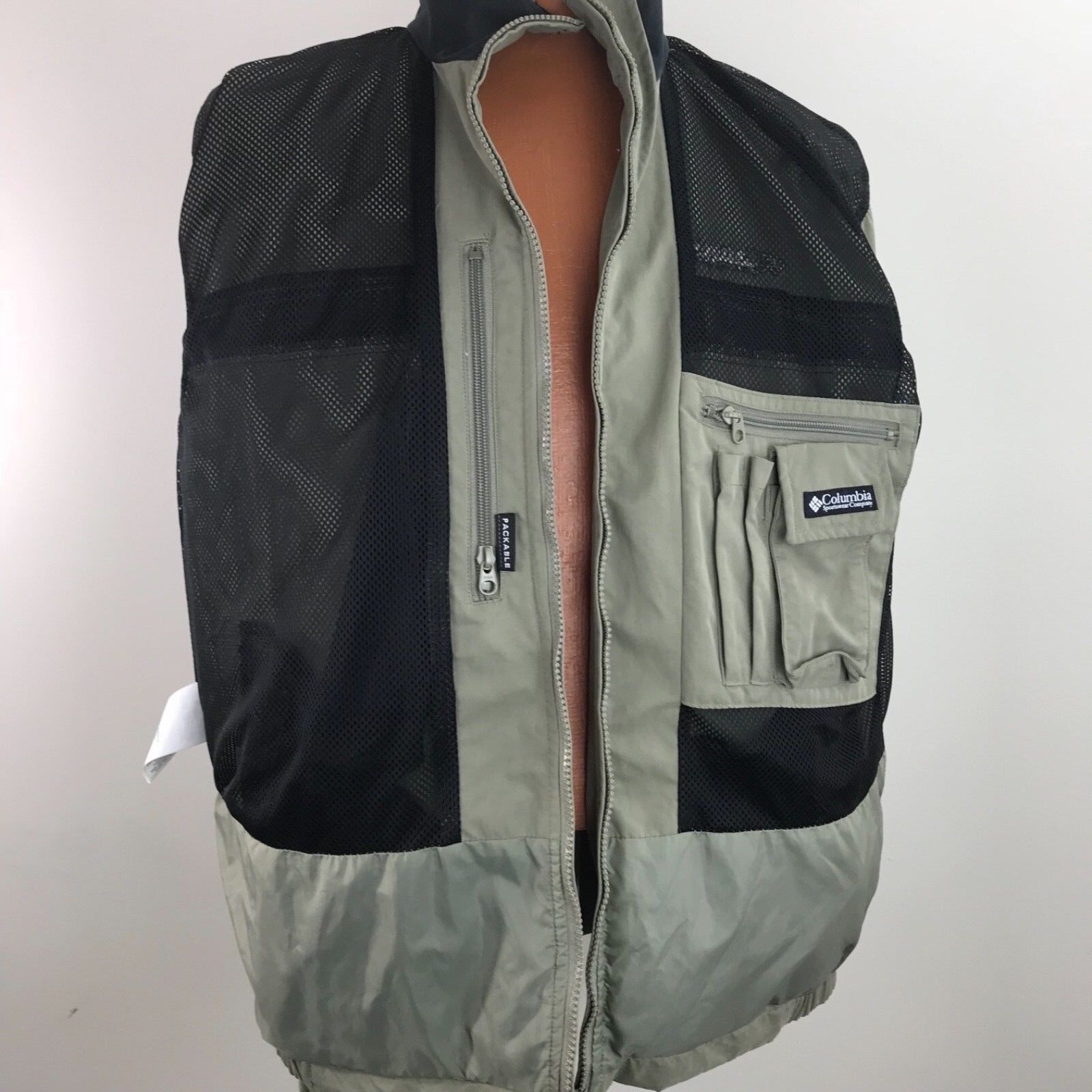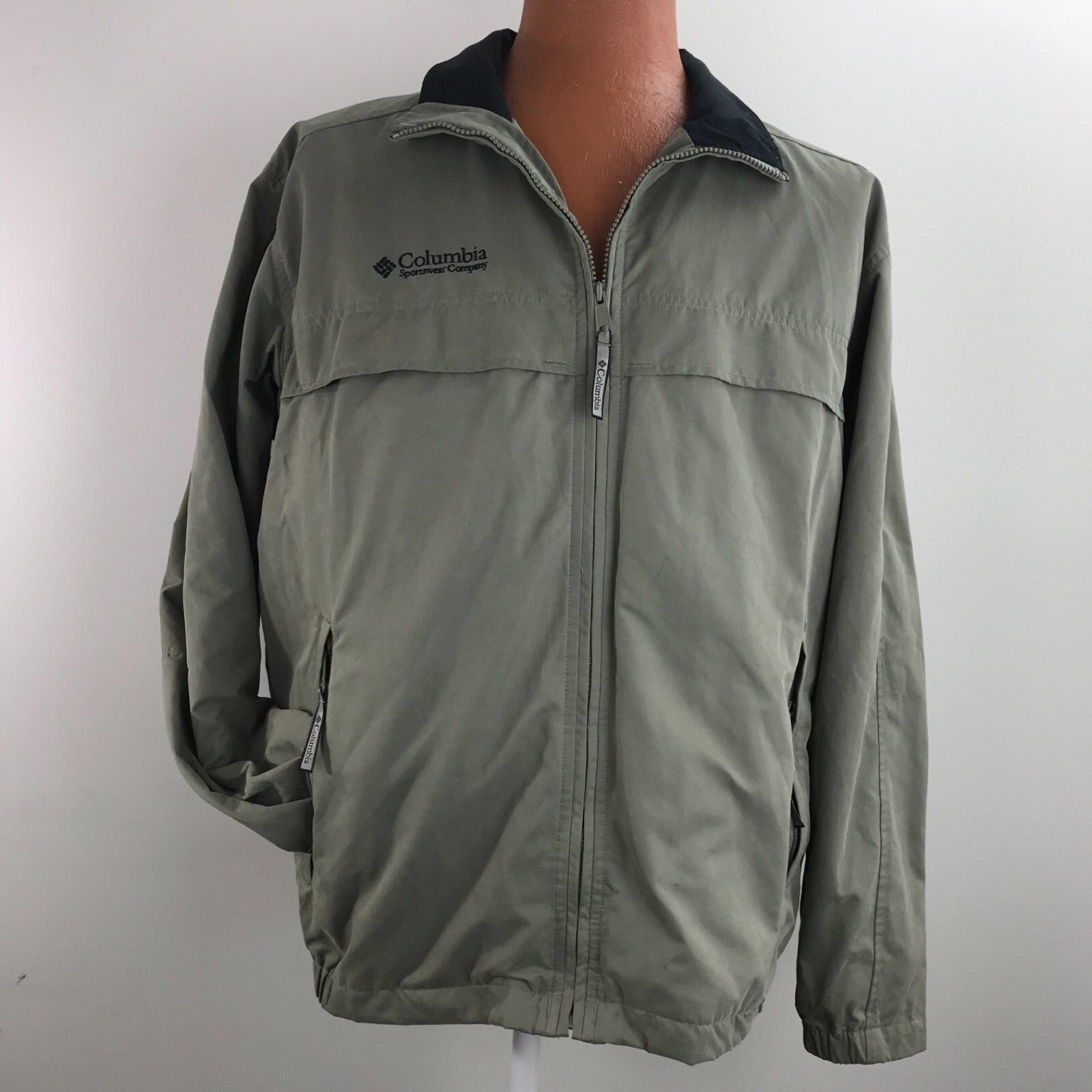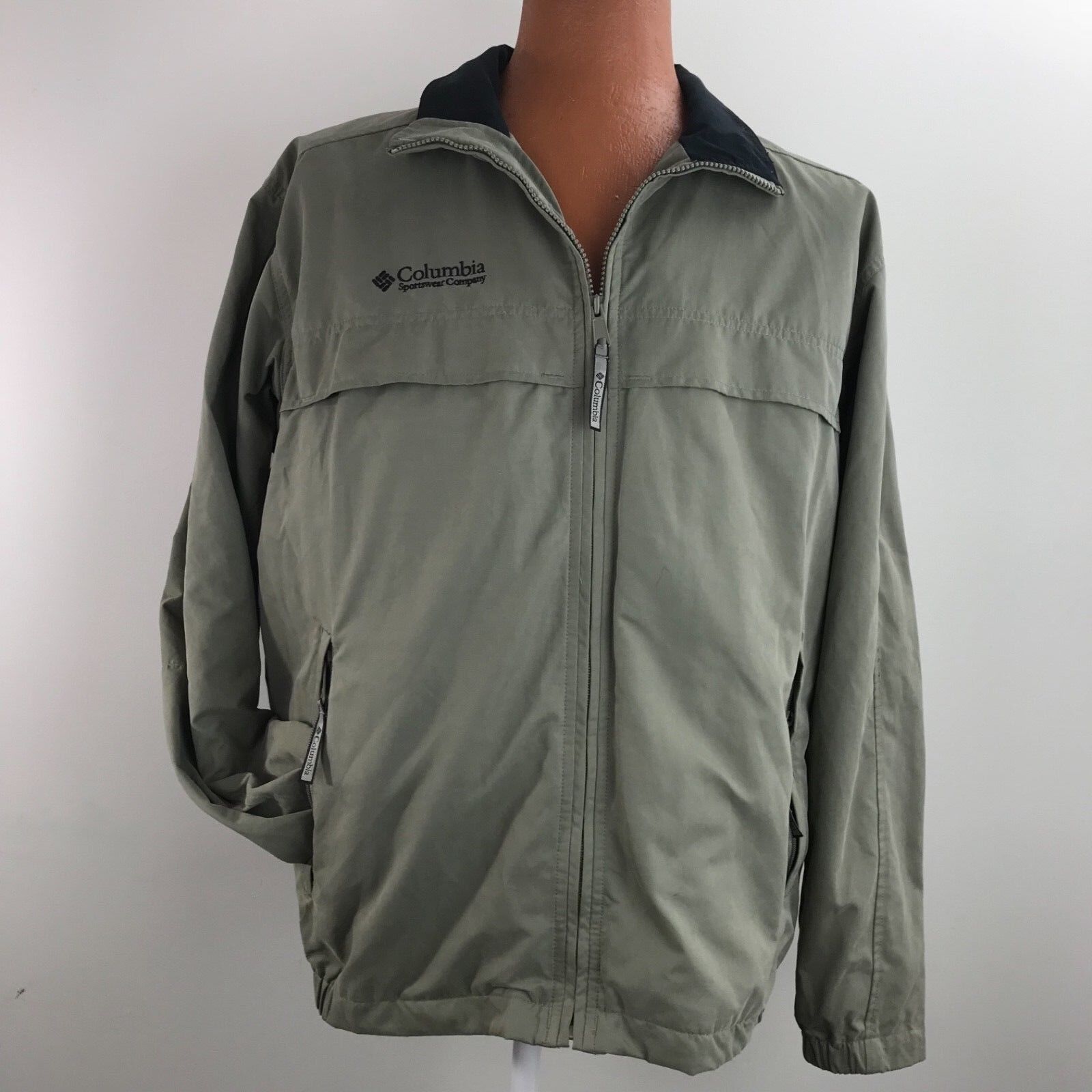 Columbia Windbreaker Jacket Button Full Zip Vented Packable Green Size Large