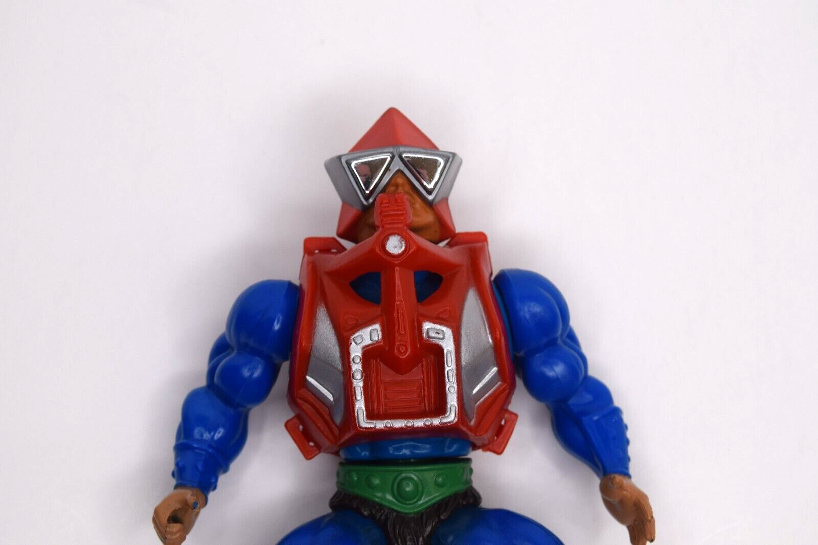Vintage 1983 Masters of the Universe MOTU Mekaneck Figure Complete w/ Armor Weapon. Pre-owned in good condition for the age. Some wear from play and storage. Back of the head has some paint wear. Arms and legs are tight, legs do not stay forward. Armor is nice with no broken clips. Weapon is in very nice shape. Body under armor is a lighter blue than the arms and legs. See all photos for details and condition. Will ship USPS Ground Advantage.