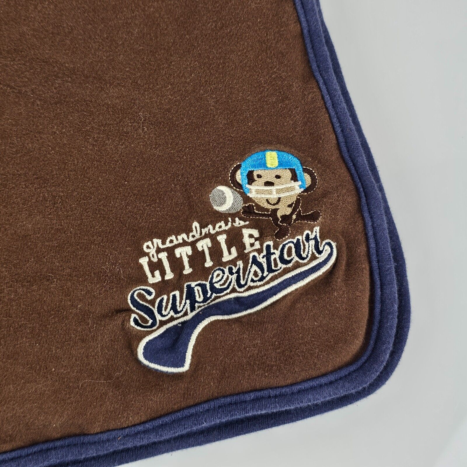 Just One You Grandmas Little Superstar Monkey Baby Blanket Gray Brown Blue Sport