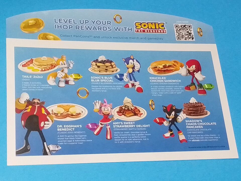 Sonic The Hedgehog IHOP Restaurant Promotional Original Tabletop Flashcard NEW!