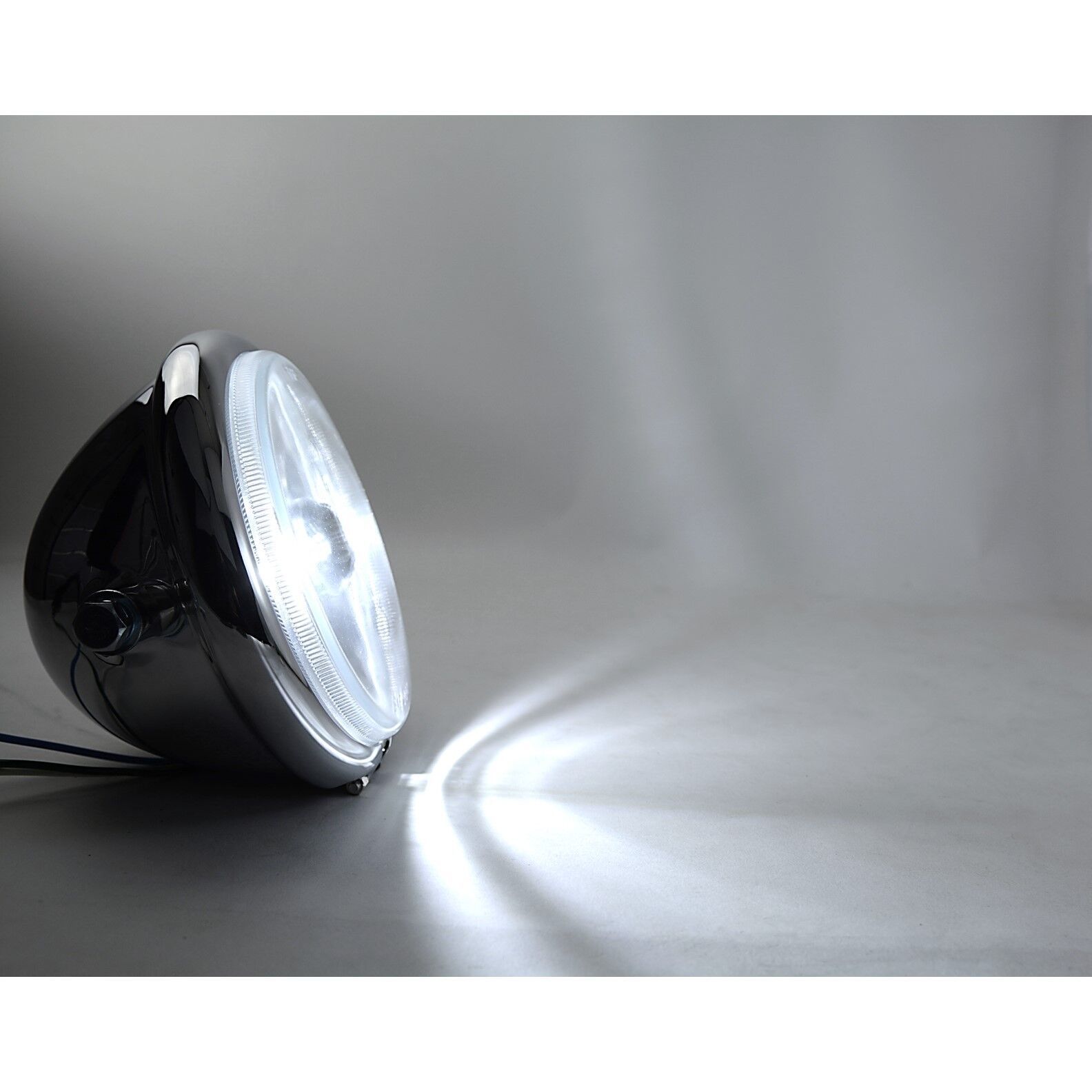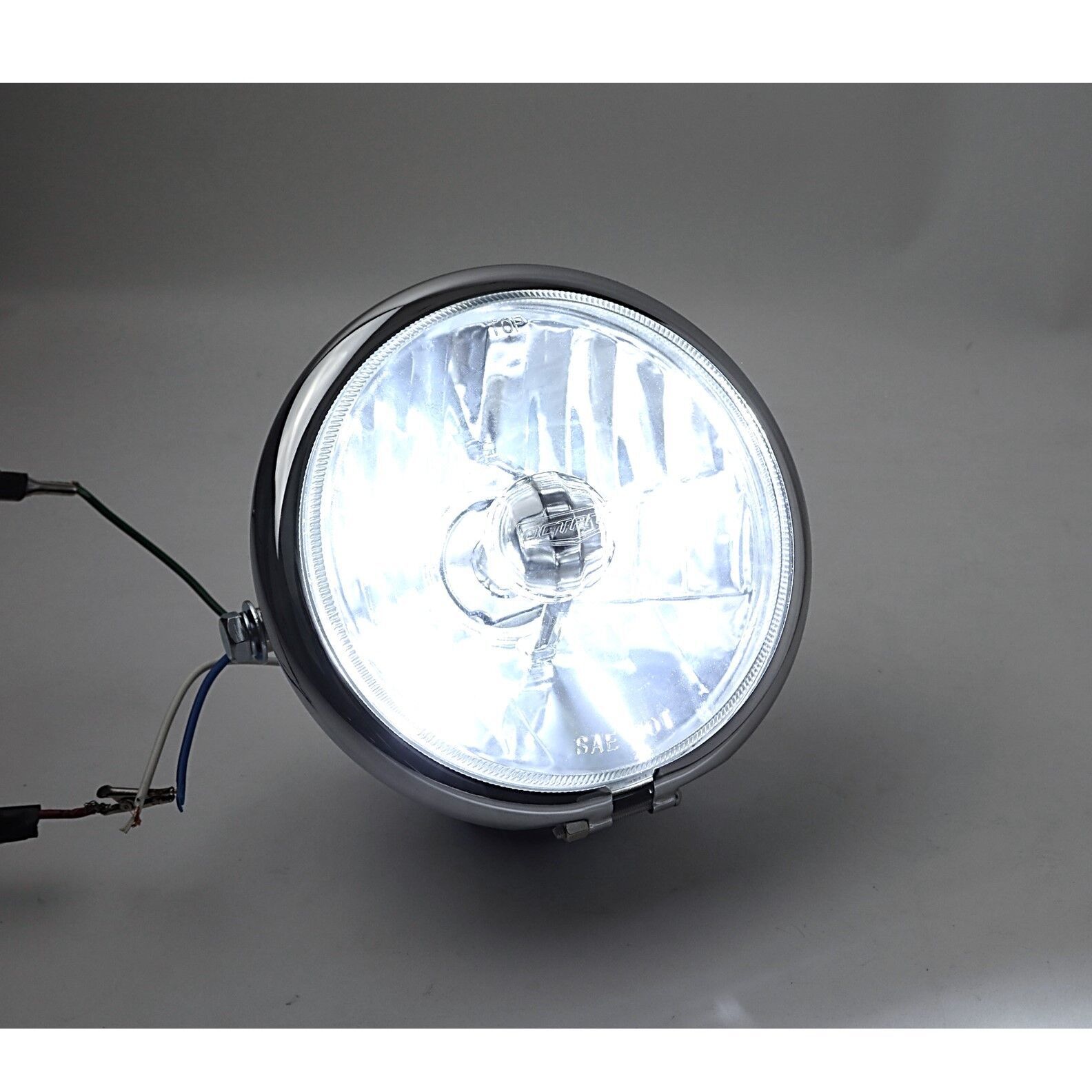 5-3/4" Motorcycle Crystal 6v LED Headlamp w/ Chrome Moto Bucket Side Mount EACH