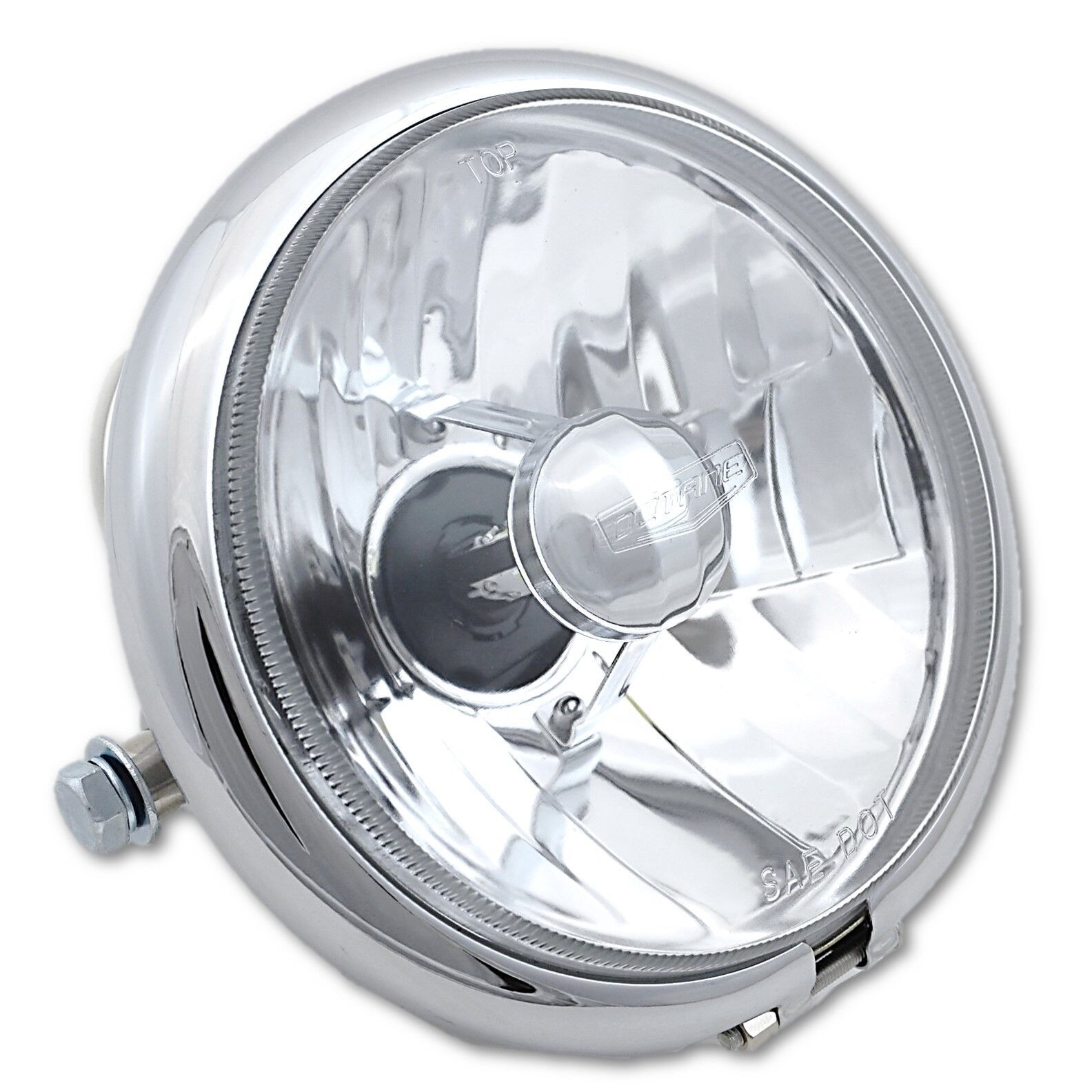 ONE - NEW - MOTORCYCLE 5-3/4" INCH ROUND CRYSTAL CLEAR GLASS HEADLAMP CHROME METAL HOUSING