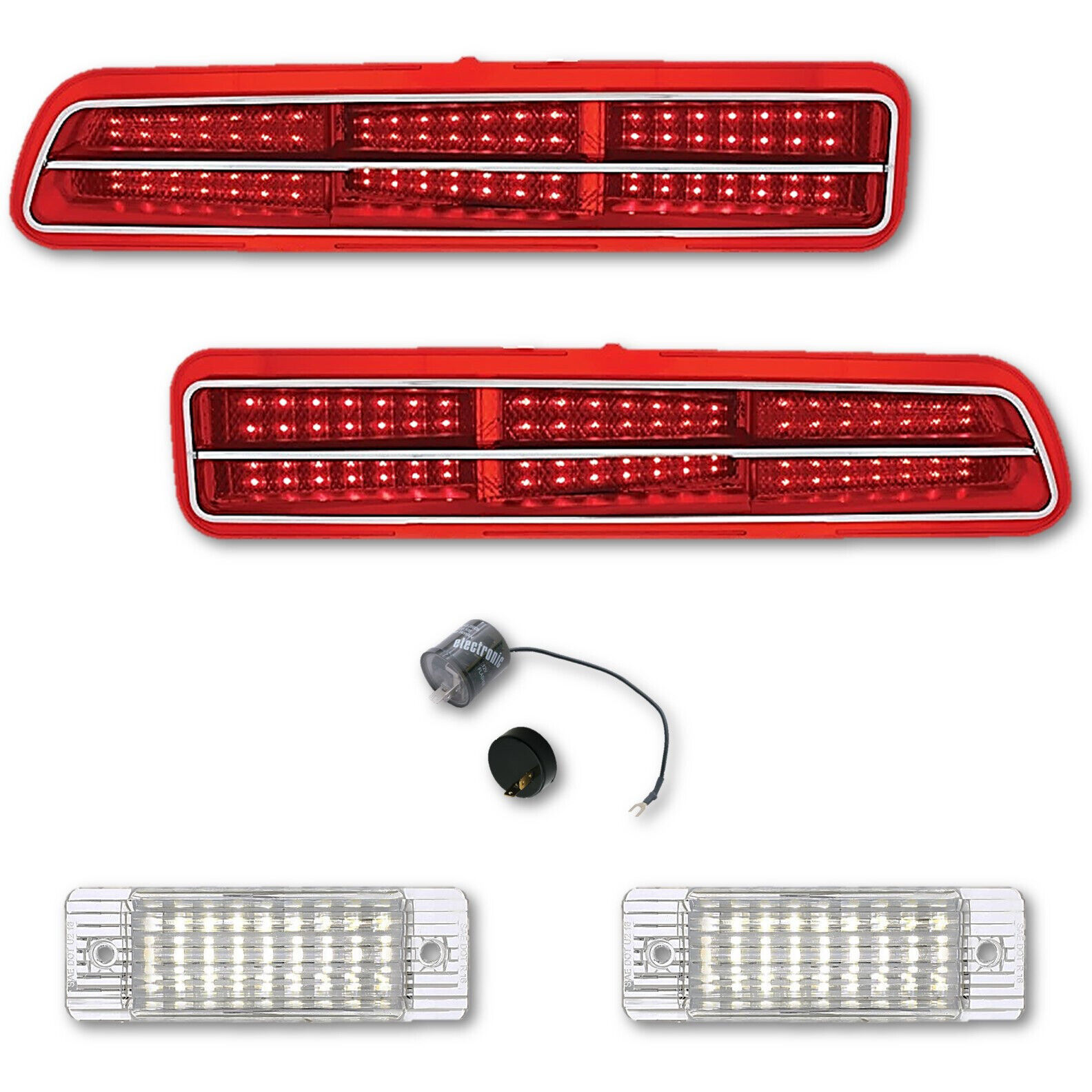 69 Chevy Camaro L & R LED Tail Back Up Brake Light Lenses & Trim w/ Flasher Set
