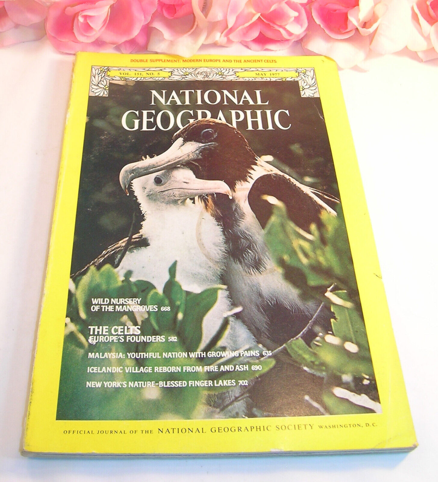are buying a used National Geographic Magazine. This magazine is from 1977, Volume 151 No. 2. Please look closely at the pictures for item condition. Articles in this issue are about Europe,The Celts Europe's Founders, Malaysa, Wild Nursery of the Mangroves, Finger lakes and more.