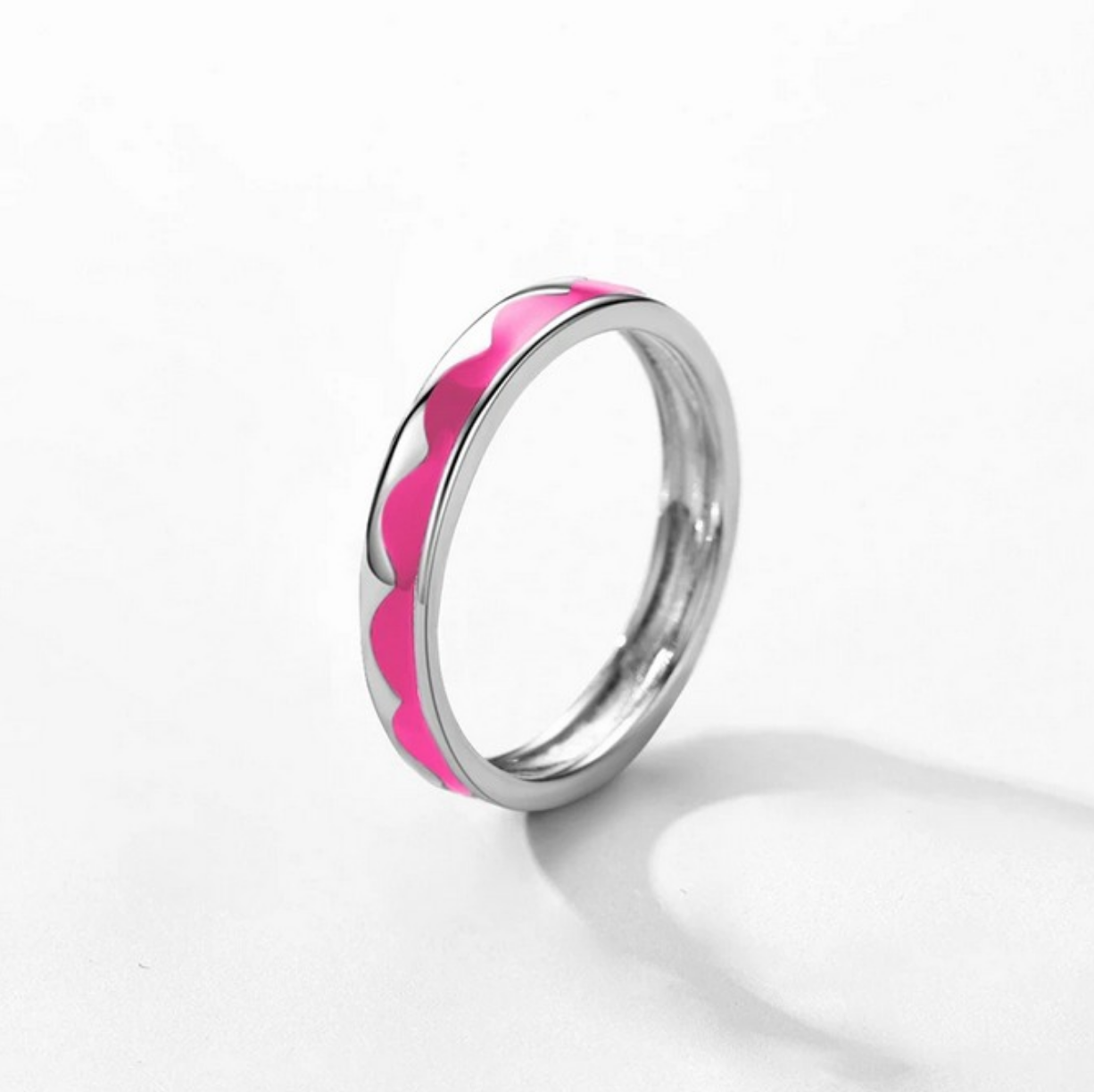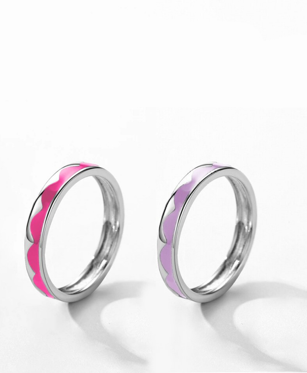 Authentic 925 Sterling Silver Pink/Purple Enamel Exquisite Wave Ring