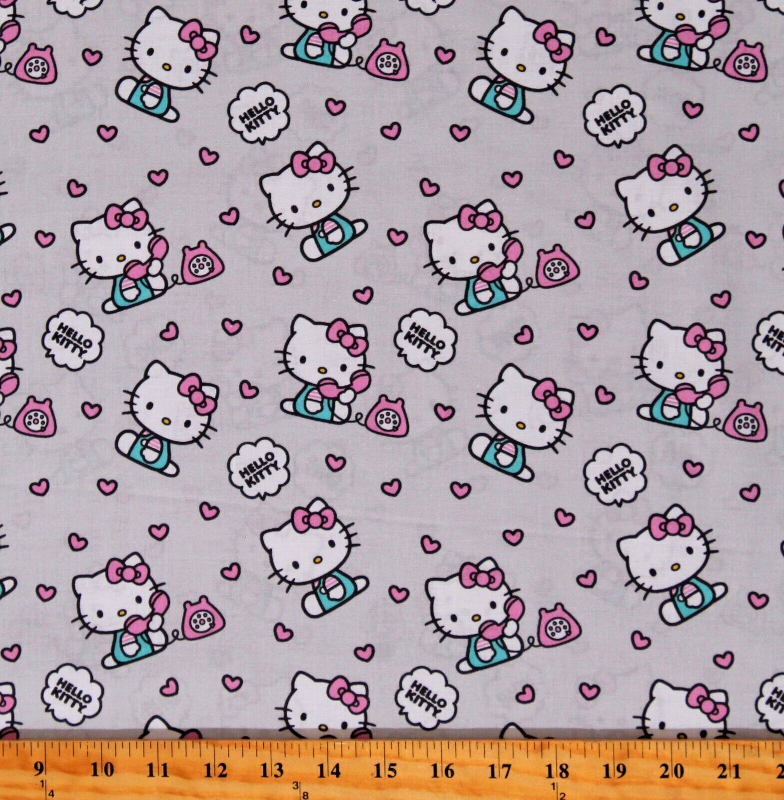 Cotton Hello Kitty Telephone Hearts Kids Character Cartoon Gray Cotton Fabric Print by the Yard (80308-A620715)