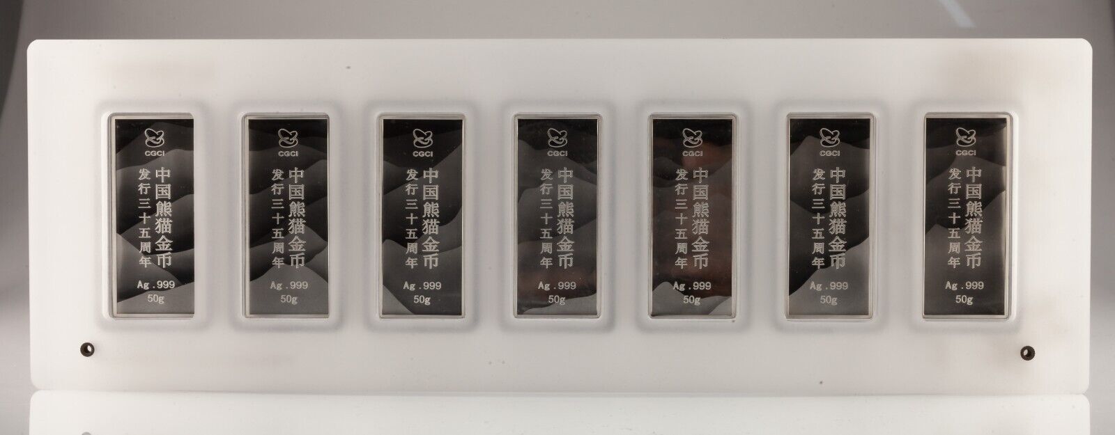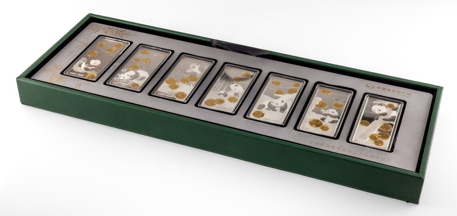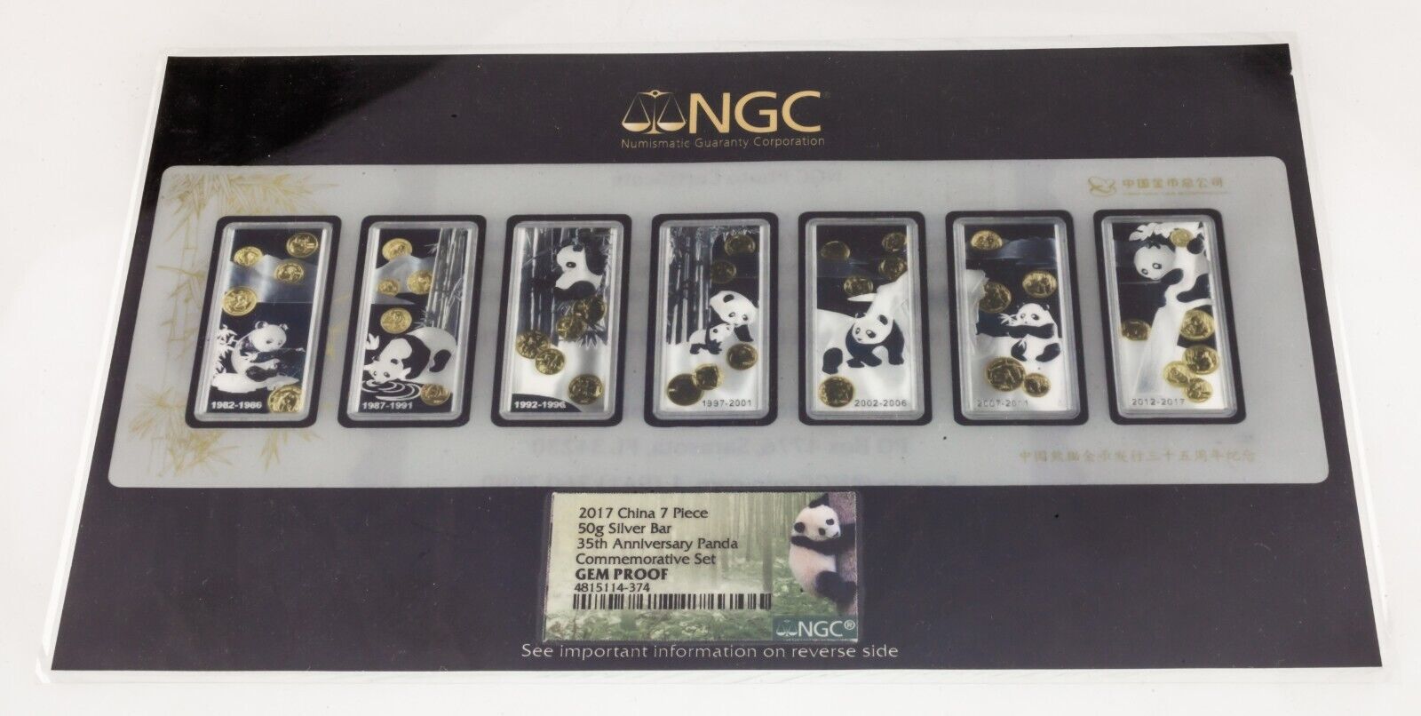 2017 China 7 Piece 50 gram Silver Bar 35th Anniversary Panda Set NGC Gem Proof