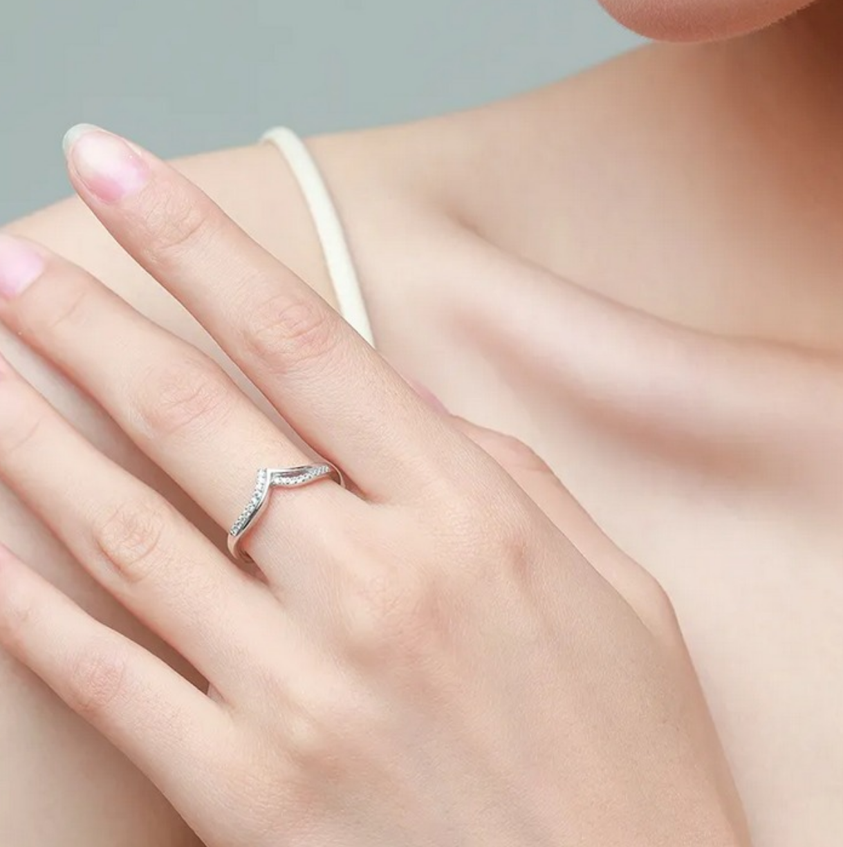 Elegant 925 Sterling Silver Dazzling V-Style Zirconia Wave Ring