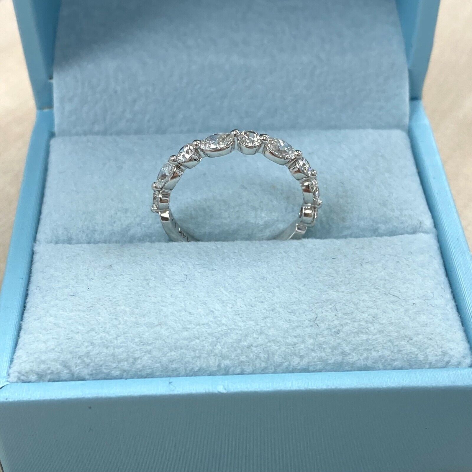 1.20Ct Round and Oval Cut Alternating Lab Grown Diamond Wedding Band 14k Gold