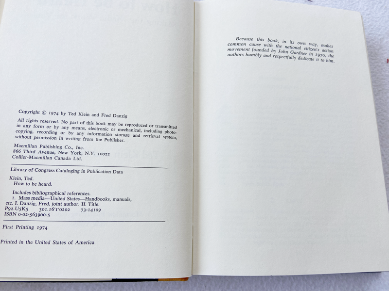 (First Printing) 1974 HC How to Be Heard; Making the Media Work for You