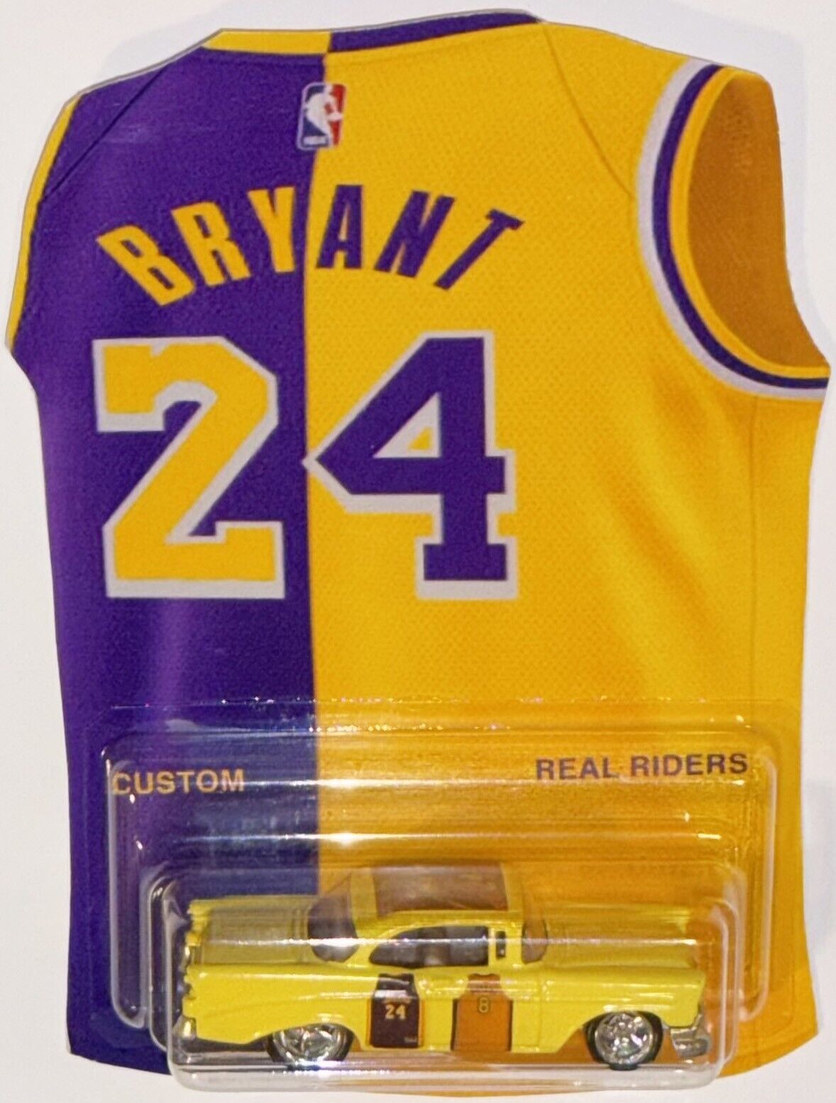 '56 Chevy Custom Hot Wheels Kobe Bryant Lakers T-Shirt Series w/RR Real Riders Rubber Tires.